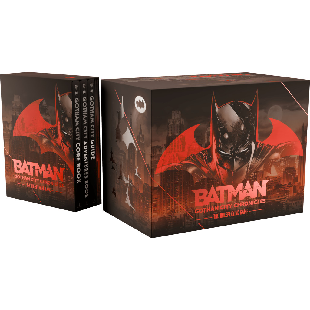 Batman : Gotham City Chronicles est un jeu de rôle basé sur l’univers du personnage iconique appelé Batman, créé en 1939 par Bob Kane avec Bill Finger et dont les aventures continuent d’être publiées aujourd’hui par Detective Comics. Les scénarios se déroulent de nos jours, à Gotham City, une mégapole portuaire de huit millions d’habitants située sur la côte Est des États-Unis, implantée sur plusieurs îles et connue pour son architecture qui mélange gratte-ciels high-tech, manoirs néogothiques, docks, quartiers déshérités et friches industrielles. La ville est également réputée pour son atmosphère lugubre, sa corruption et son taux exceptionnellement élevé d’insécurité, qui ont conduit des personnes surdouées à endosser la tenue de justiciers, afin de défendre les faibles et de soutenir les forces de l’ordre dans leurs efforts désespérés pour combattre le crime.