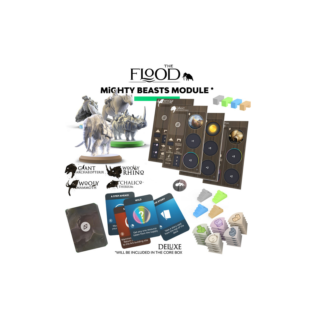 Dans The Flood, les joueurs sont transportés dans le temps, dans le monde préhistorique avant le déluge. Leur objectif est de construire un réseau de huttes et de camps, et de collecter et rassembler suffisamment de ressources pour construire l'arche avant le déluge. Chaque joueur dispose d'une bête puissante unique, une figurine de héros qui peut rechercher des ressources stratégiques. The Flood propose deux modes de jeu : des scénarios coopératifs et un mode solo.