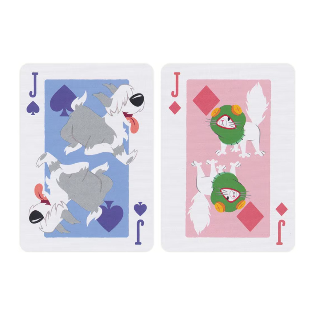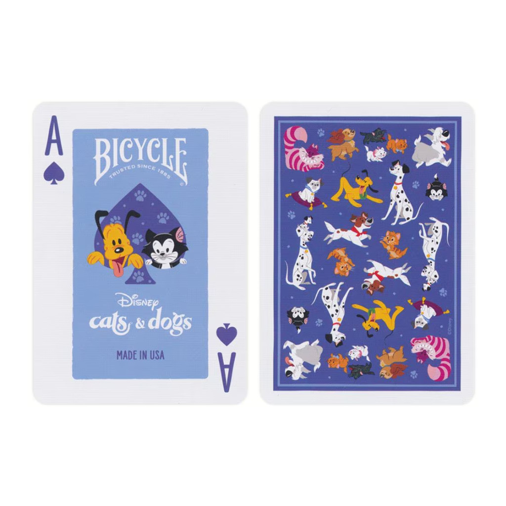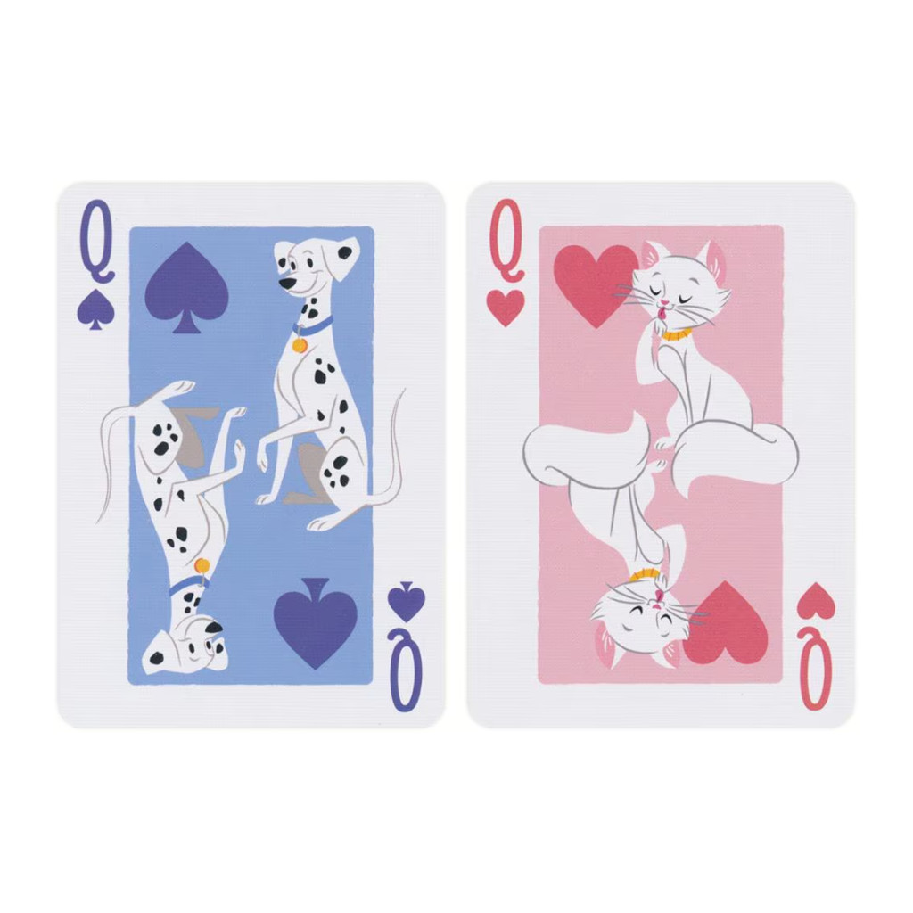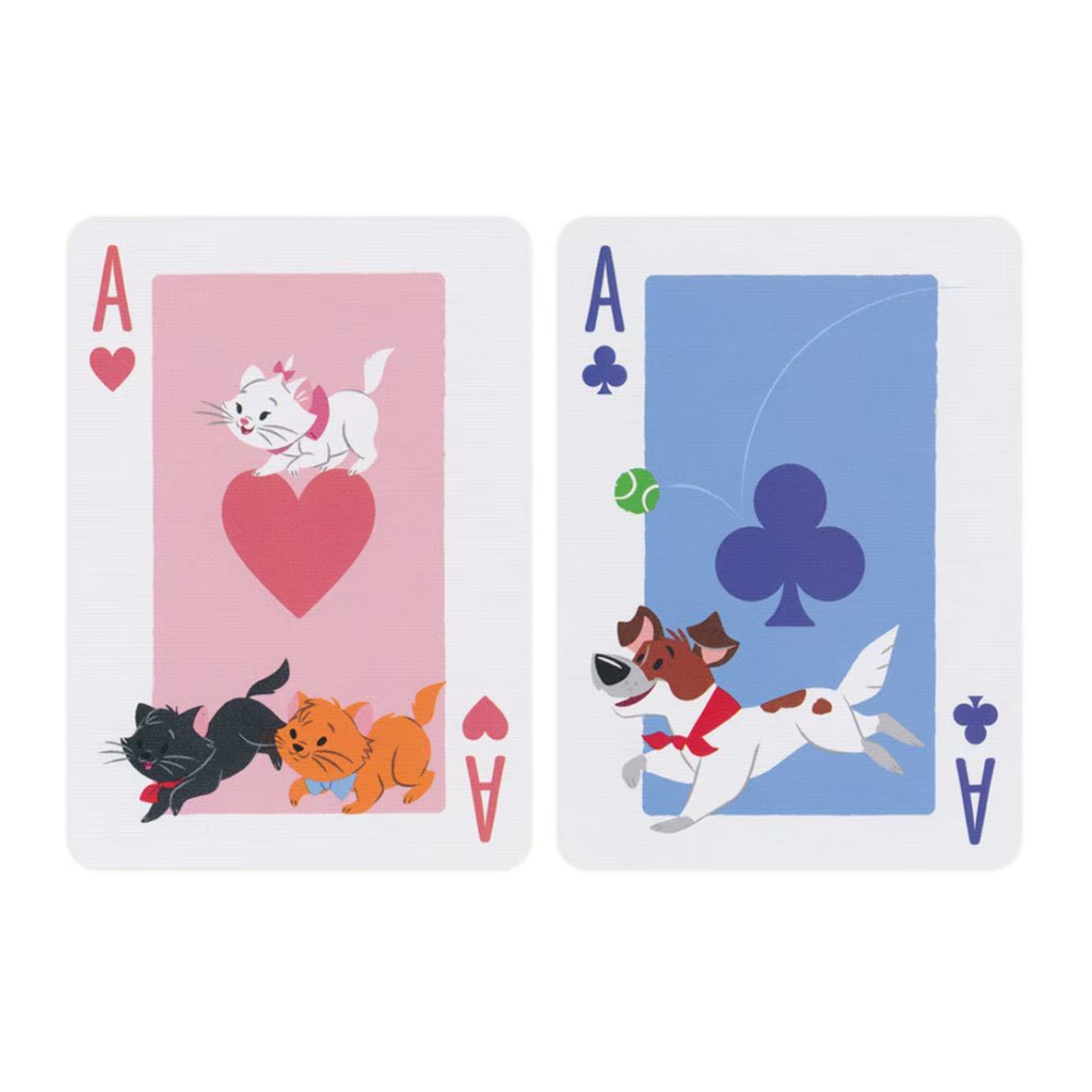 C’est le duel entre félins et canins avec les cartes à jouer Disney Cats and Dogs par Bicycle ! Les chiens Disney remplissent les couleurs noires, tandis que les chats Disney dominent les rouges. Le dos des cartes présente un adorable motif avec des Dalmatiens, Nana, Max, le Chat du Cheshire et bien d’autres ; vous pourriez avoir besoin d’un petit sac de friandises pour votre prochaine soirée jeu !