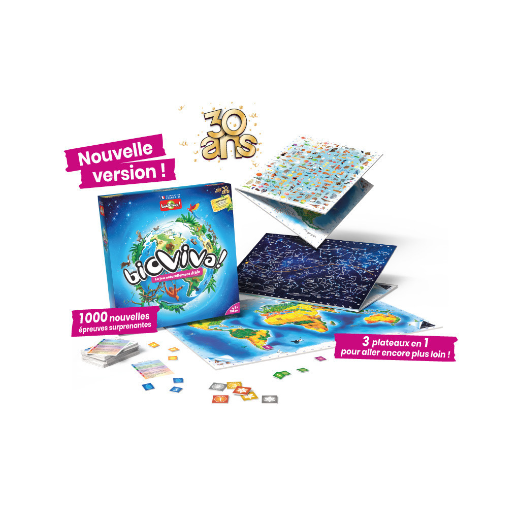 En 2025, pour célébrer les 30 ans de Bioviva et de son jeu emblématique, l’édition spéciale 30 ans voit le jour, avec 1 000 nouvelles épreuves surprenantes et 3 plateaux en un, pour des parties encore plus riches en découvertes, en rires et en défis !