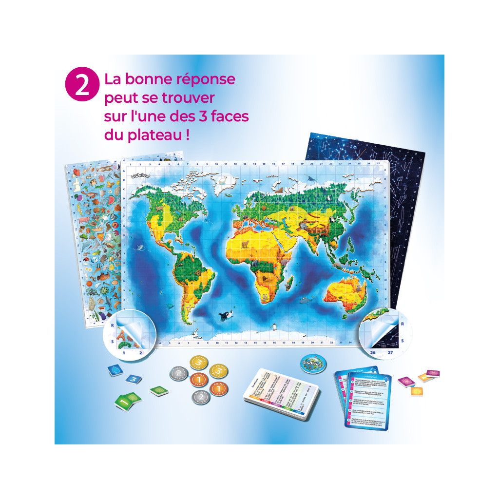 - Où ça ? : les joueurs tentent de trouver la réponse sur l’un des 3 plateaux (planisphère, constellations ou cherche et trouve). Le plus précis gagne !