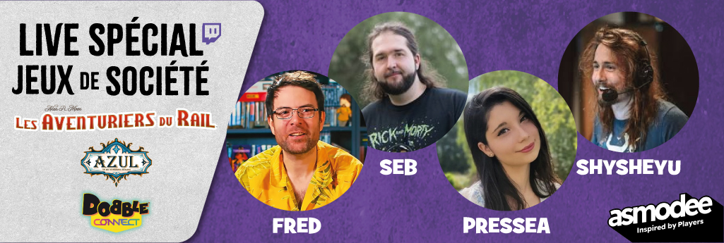 Ce jeudi 4 décembre à 20h, Joueur du Grenier, Seb du Grenier, Pressea et Shisheyu, s'affrontent sur Board Game Arena sur Les Aventuriers du...