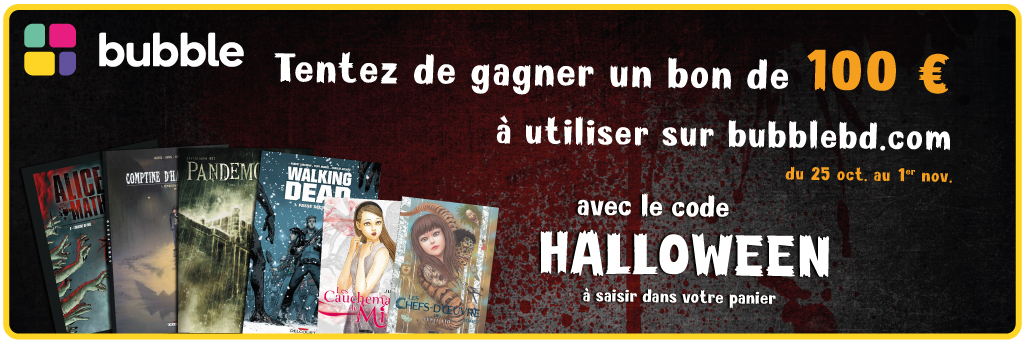 C'est bientôt Halloween et vous cherchez des histoires qui font peur ? Ça tombe bien, Philibert et BubbleBD s'associent pour l'occasion et vous proposent de tenter de gagner un bon de 100 € pour faire le plein de BD ! De quoi frissonner de plaisir la nuit d'Halloween !