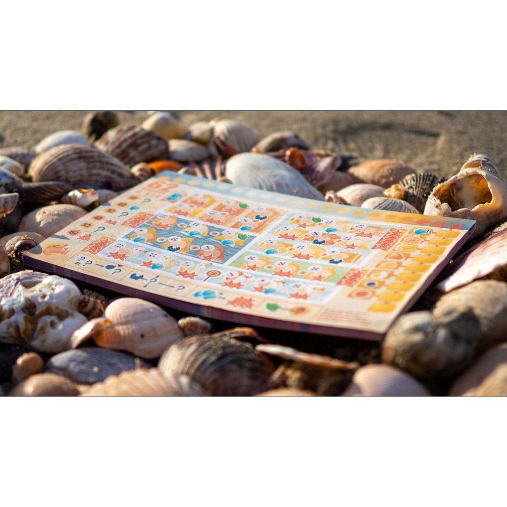 62 Soleils d'Eté est un roll & write créé par Théo Rivière et illustré par Hervine, disponible uniquement lors du Blague Friday 2025.
