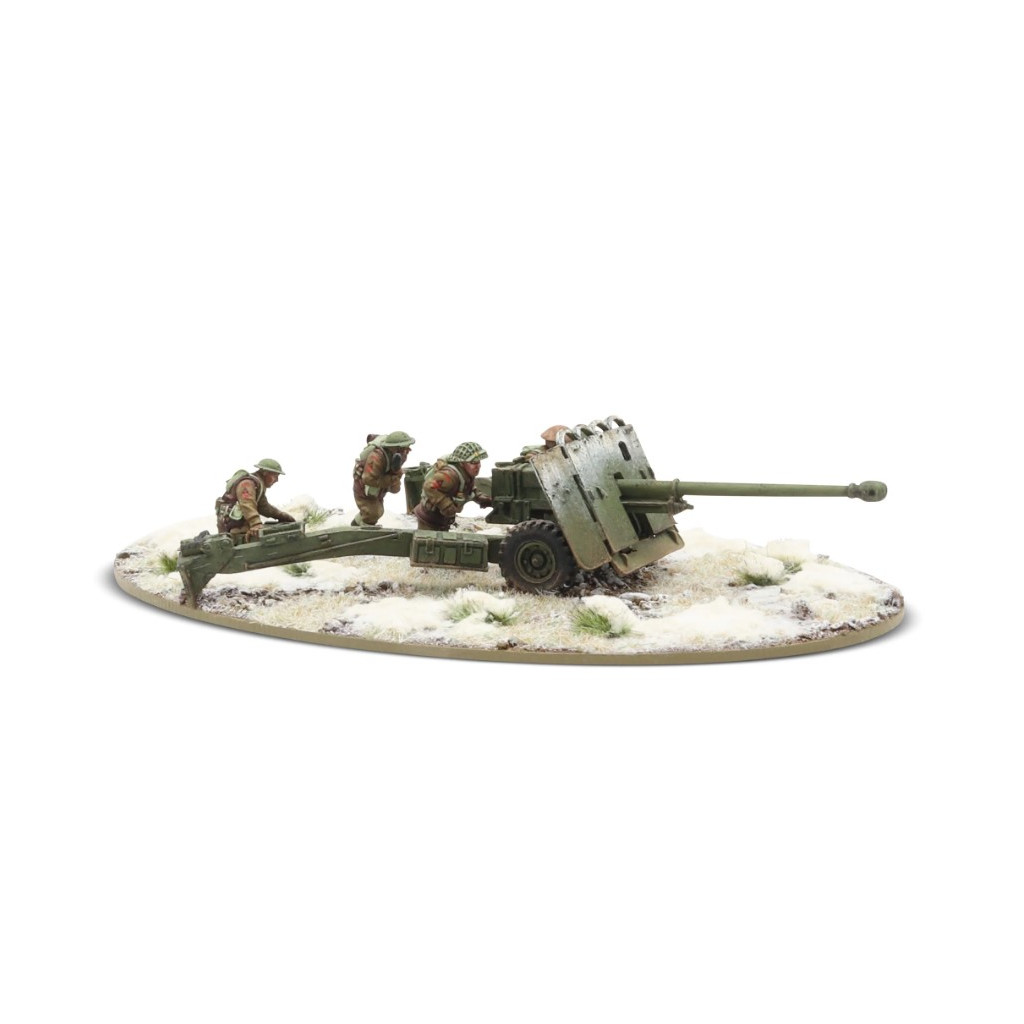 Le QF 17-pdr a été développé pour venir à bout des chars allemands plus lourdement blindés rencontrés par les Britanniques lors des combats en Afrique du Nord. Quelques 17-pdr hybrides montés sur des affûts de 25-pdr (appelés « Pheasants ») ont été envoyés au début de l'année 1943, mais la version finale n'a été déployée que plus tard dans l'année, faisant ses débuts au combat en Italie. Au moment de la campagne en Europe occidentale, il équipait les régiments antichars de la Royal Artillery. Le 17-pdr était le canon antichar le plus redoutable déployé par les Alliés occidentaux, capable de pénétrer plus de 200 mm de blindage à courte portée à l'aide d'obus perforants à sabot (APDS). Conçu presque exclusivement pour la lutte antichar, le 17-pdr recevait des obus HE dont la puissance était quelque peu inférieure à ce que leur taille pouvait laisser supposer, ce qui se reflète dans ses règles spéciales dans Bolt Action.