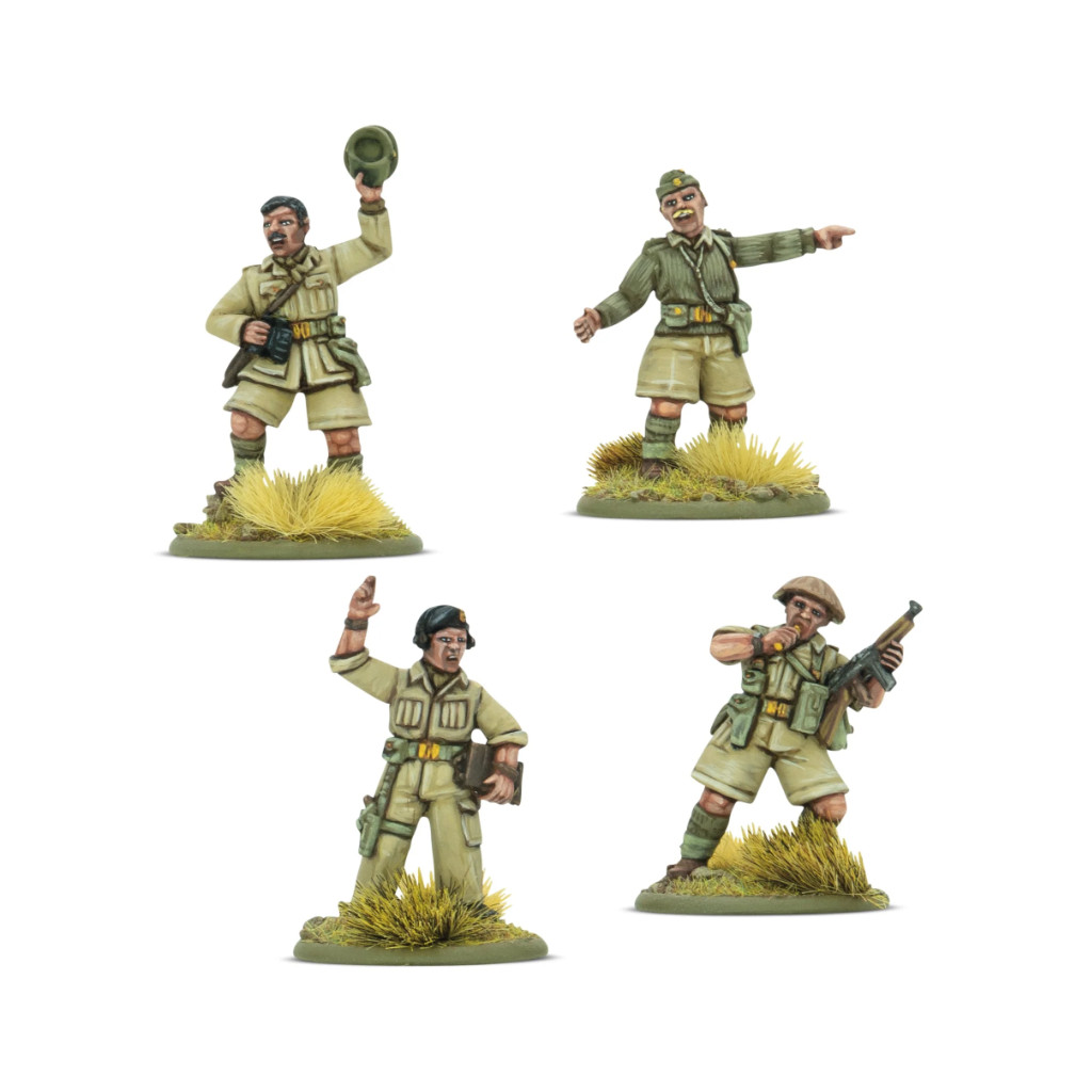 L'armée britannique pouvait se prévaloir d'une longue et fière tradition d'officiers issus des classes moyennes et supérieures, et bon nombre de ces hommes allaient se révéler être des chefs extrêmement efficaces. Les combats dans le désert occidental imposaient des exigences considérables aux hommes et au matériel, et un bon commandement était essentiel pour maintenir une force prête au combat – il en va de même dans Bolt Action !
