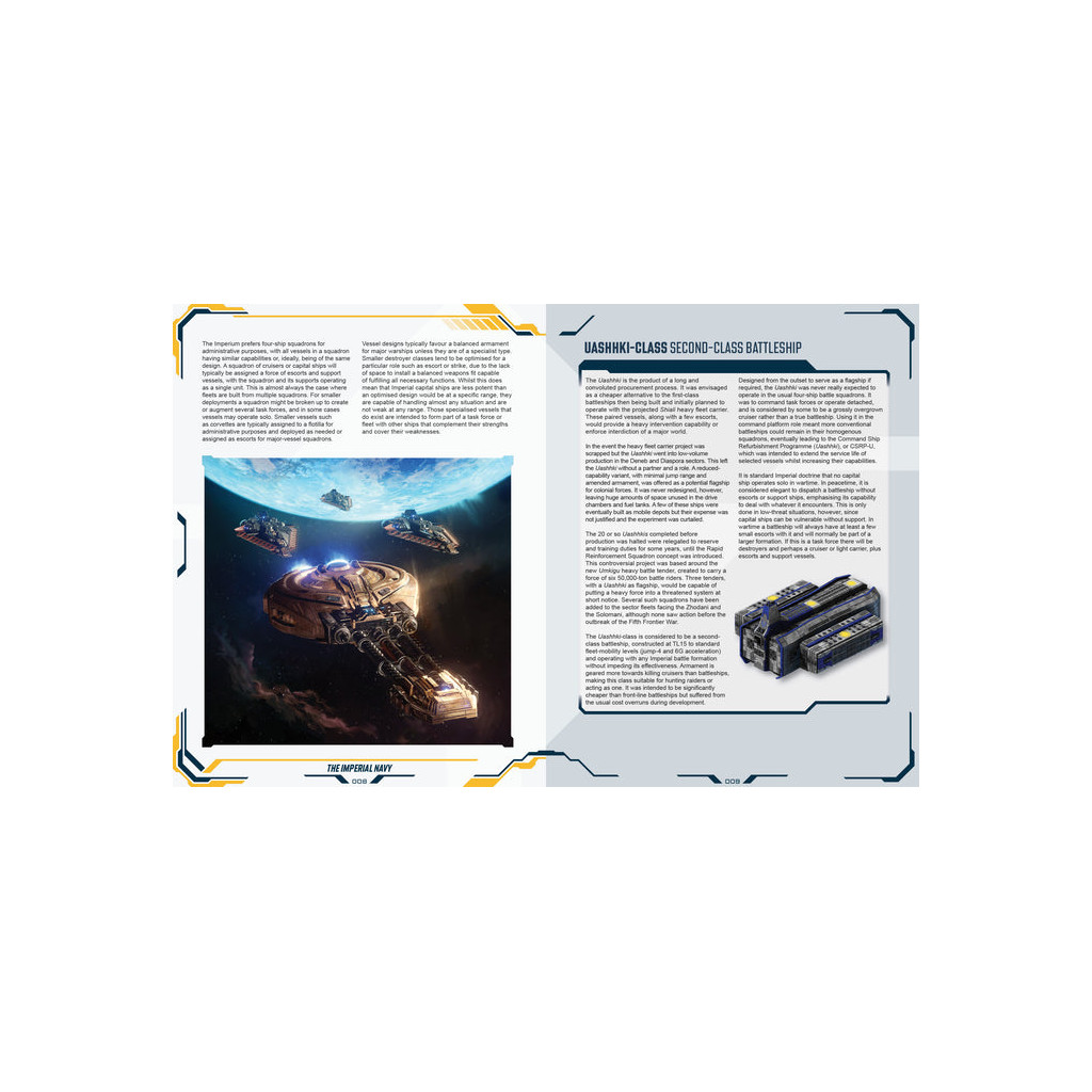 War Fleets of the Fifth Frontier War présente les doctrines militaires du Troisième Imperium et du Consulat zhodani, ainsi que les vaisseaux de guerre des deux camps : des cuirassés aux navires d’opérations clandestines, en passant par les vaisseaux de seconde ligne de la Flotte Coloniale impériale. Avec des plans de pont, des variantes, des notes sur leurs rôles et déploiements, chacun de ces vaisseaux peut devenir le cœur d’une aventure.