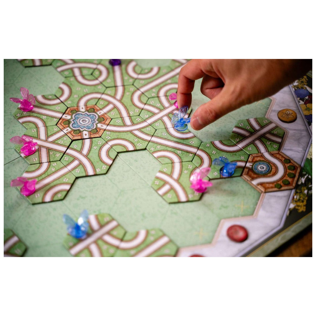 Avec la douce étreinte du printemps, les papillons sortent pour virevolter le long des sentiers. Posez des tuiles avec des chemins sinueux pour attirer les papillons vers vous. Si vous êtes malin, vous pourrez même tirer parti des tuiles posées par les autres joueurs. Rassemblez les plus beaux et nombreux papillons pour l’emporter !