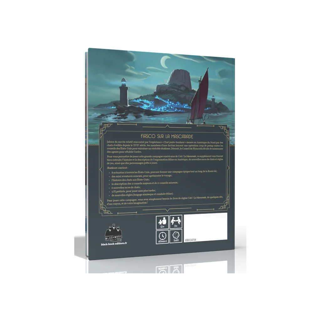 Pour vous permettre de jouer cette grande campagne américaine de Cats ! La Mascarade, ce supplément vous fournit l’histoire et la description de l’organisation féline en Amérique, de nouvelles races de chats et règles de jeu, ainsi que des personnages prêts à jouer.