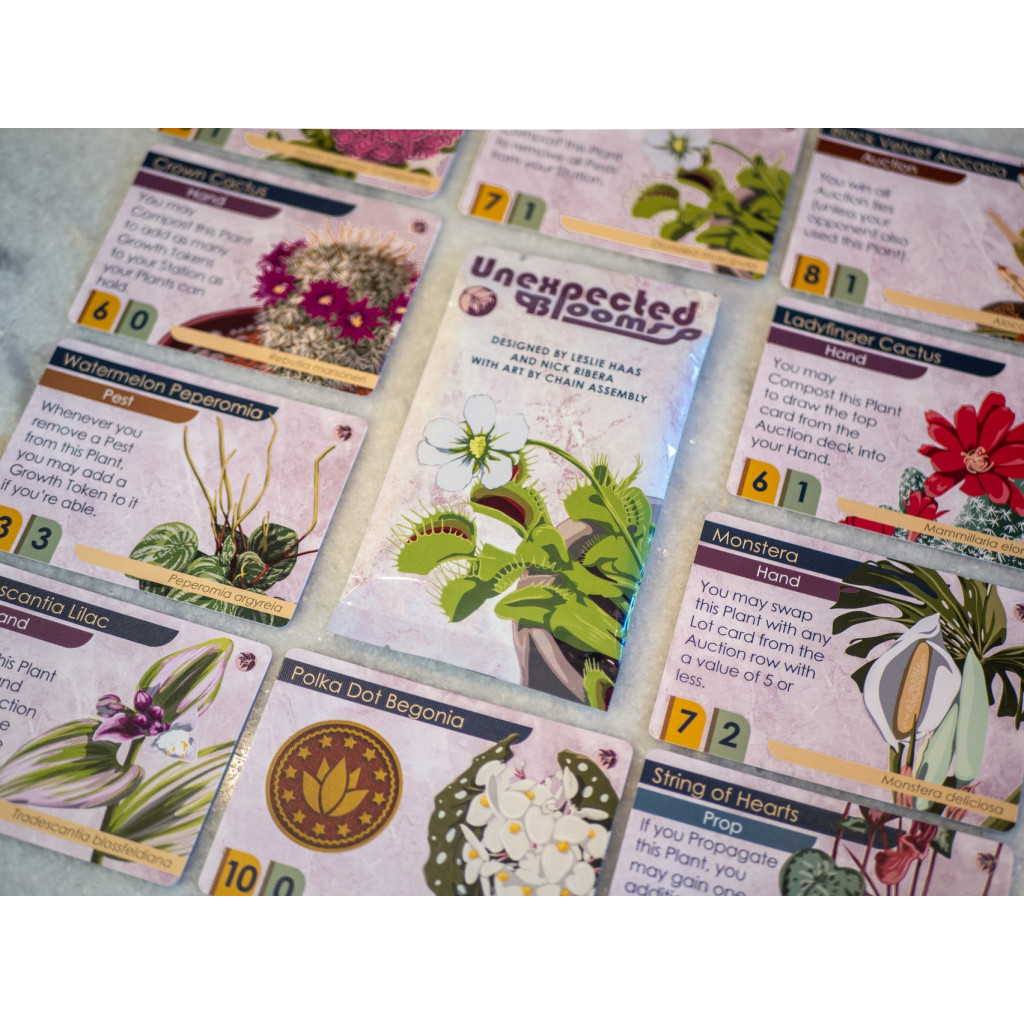 Conçue pour s’intégrer naturellement à n’importe quelle partie, Unexpected Blooms ajoute de la variété et de la rejouabilité sans alourdir le jeu, faisant de chaque tirage du paquet d’enchères une véritable surprise!