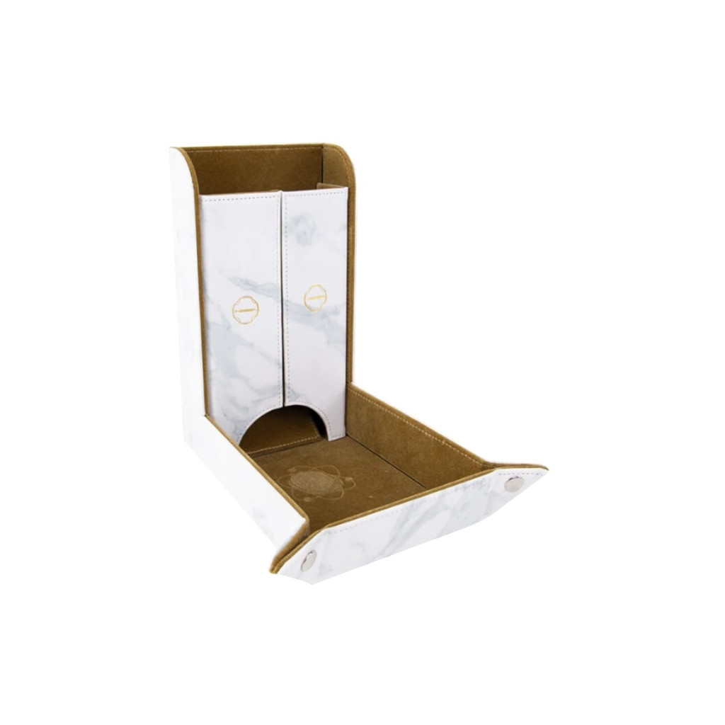 Avec sa magnifique finition en marbre blanc assortie à votre siège Victorum et ses rabats magnétiques pour un montage/démontage rapide et facile, cette beauté en cuir reconstitué est le complément idéal de vos dés en alliage ! Assurez-vous un lancer parfait à chaque fois tout en protégeant votre surface de jeu !