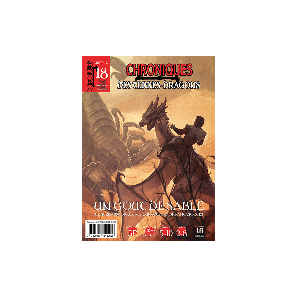 Dans ce numéro 18 découvrez Le goût du sable : Sur la route de « l’ambre du désert », les personnages vont découvrir une société qui rassemble dragons et elfes. Au-delà des étranges mœurs des peuples des sables, certaines choses vont les faire s’interroger. Ces elfes connaissent manifestement la grande valeur de l’ambre et négocient férocement alors que les dragons semblent comploter et répéter bien trop souvent et en tremblant un certain nom… Un scénario difficile comme la survie dans le désert !