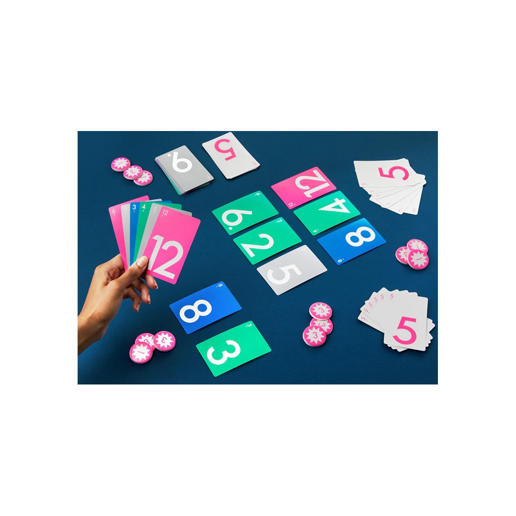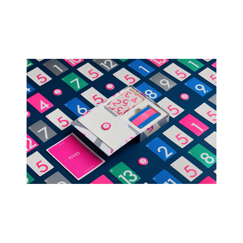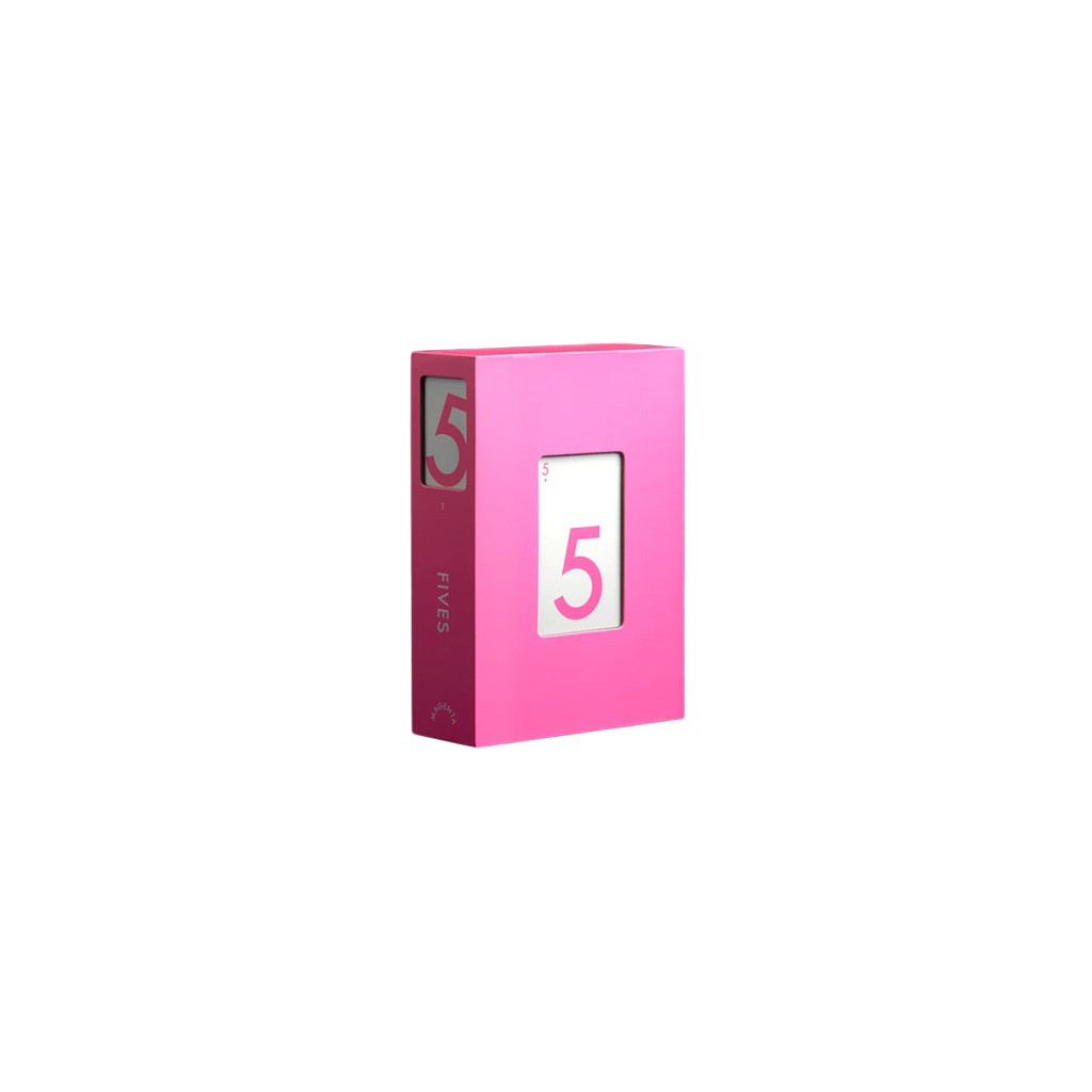 Fives est un jeu de plis pour trois ou quatre joueurs. Le verso des cartes comporte un 5 magenta.