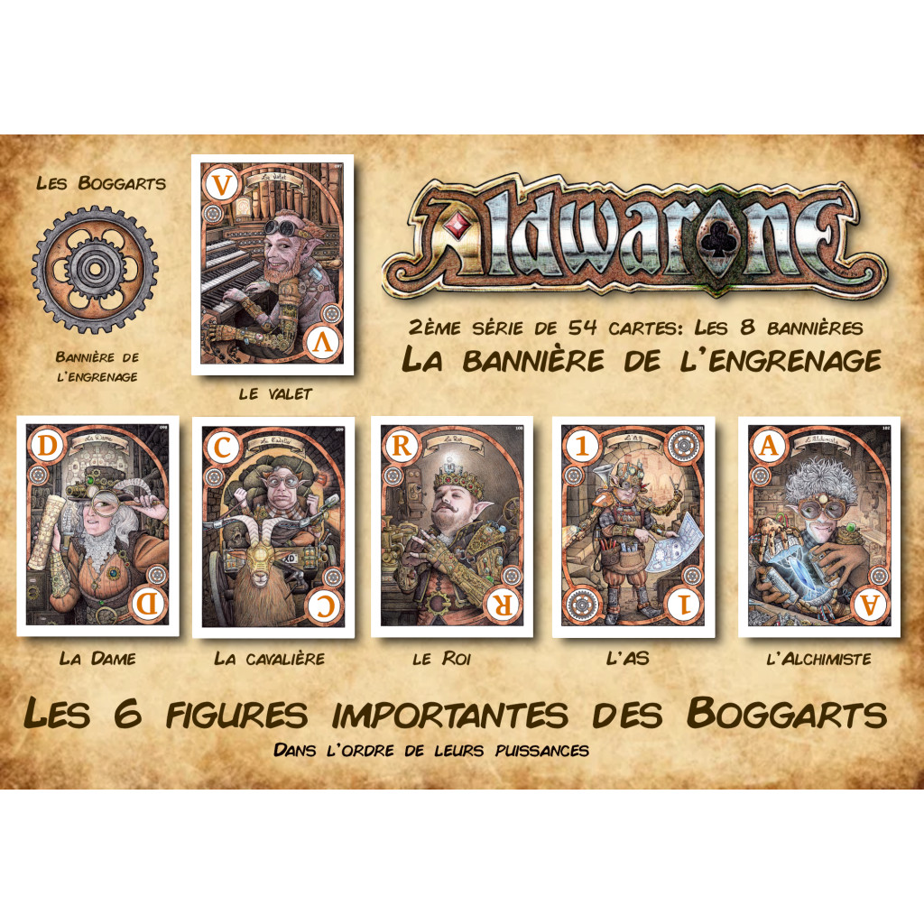 La bannières du Denier sont les Nains, la Feuille sont les Elfes des bois et le Chêne sera le petit peuple des lutins. La bannière du Triskel celle des Celtes, la Lame sont des Barbares, le crâne sont les morts-vivants et la Coupe des vampires. Pour terminer, la bannière de l'engrenage représente les Boggarts: les créatures de la famille des Lepreuchauns mais qui vivent sous terre et construisent une technologie interdite.