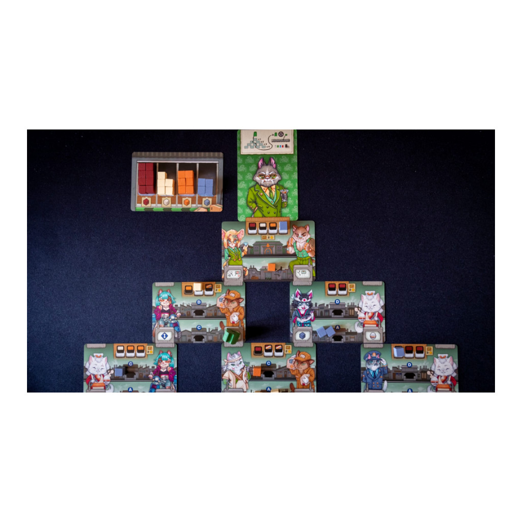 Pendant la partie, vous construirez et parcourrez la structure pyramidale d’une carte qui représente à la fois un quartier de la ville sous votre contrôle et votre chaîne de commandement.