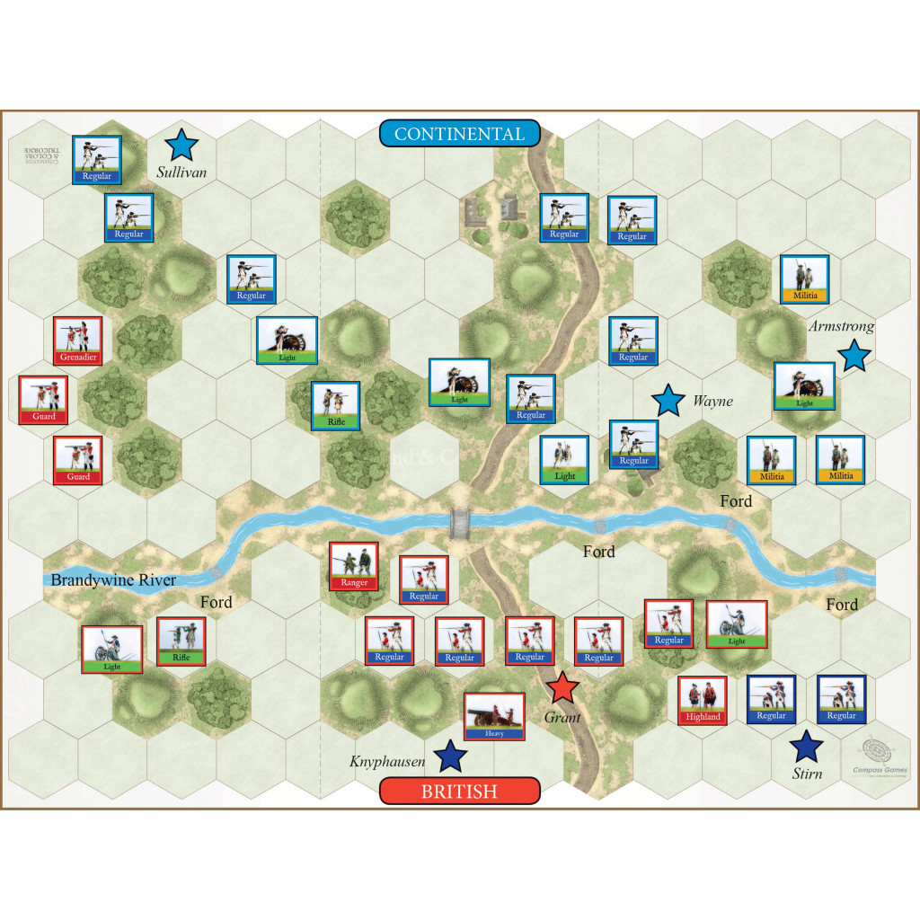 Bien entendu, les deux grandes batailles terrestres impliquant l'armée française sont incluses : Savannah et Yorktown. L’extension explore également en détail la bataille de Brandywine ainsi que celles de Springfield, Kings Mountain et Pell’s Point.