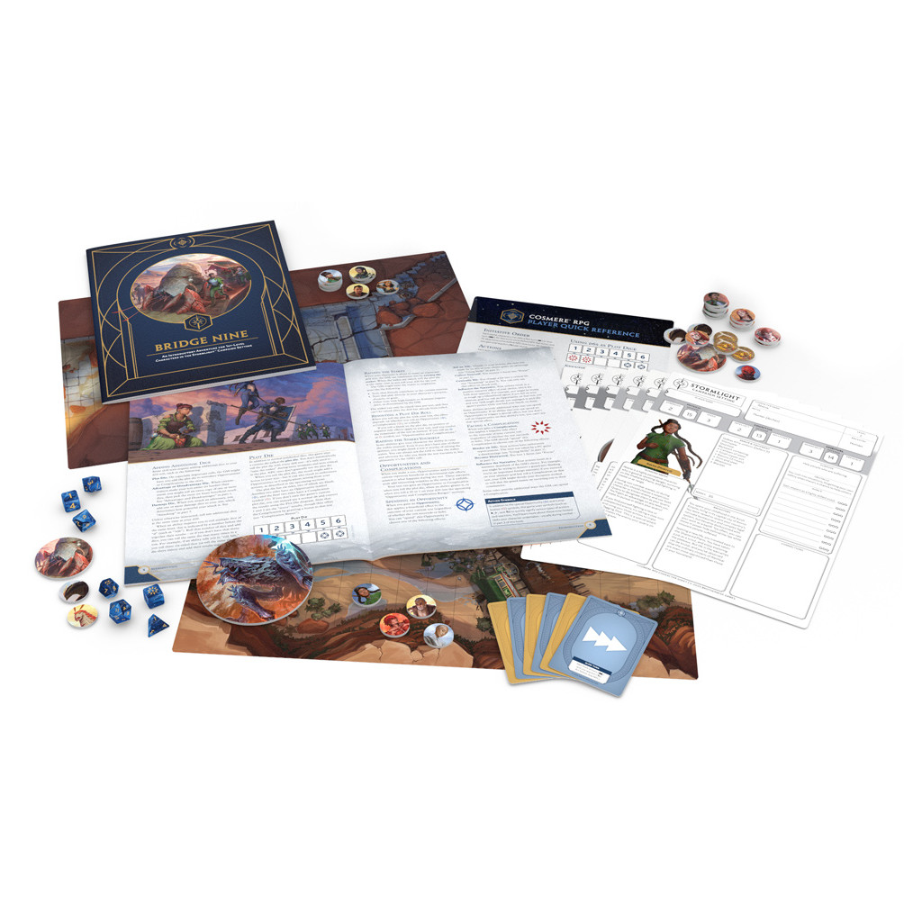 - Règles de Démarrage : Contient un livret de règles condensé de 60 pages pour la campagne Stormlight du JdR Cosmere.
