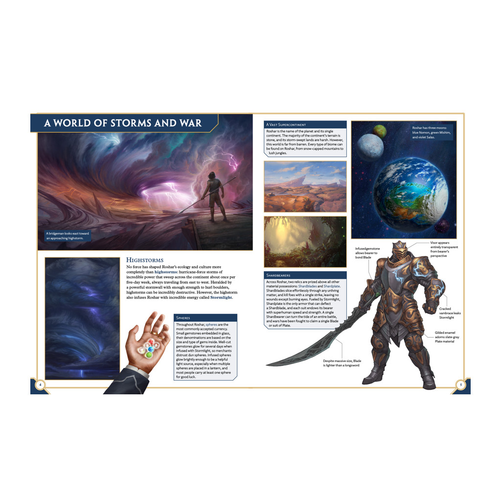 Découvrez la puissance de la Stormlight ! Roshar est le cadre extraordinaire de la célèbre série de fantasy épique de Brandon Sanderson, The Stormlight Archive. Que vous lisiez les romans ou créiez vos propres histoires au sein du jeu de rôle Cosmere Roleplaying Game, ce livret sert de guide visuel sur la flore, la faune, les cultures et la magie de Roshar. Sans révéler d’éléments de l’intrigue, Welcome to Roshar vous invite à explorer un monde fantastique comme nul autre.