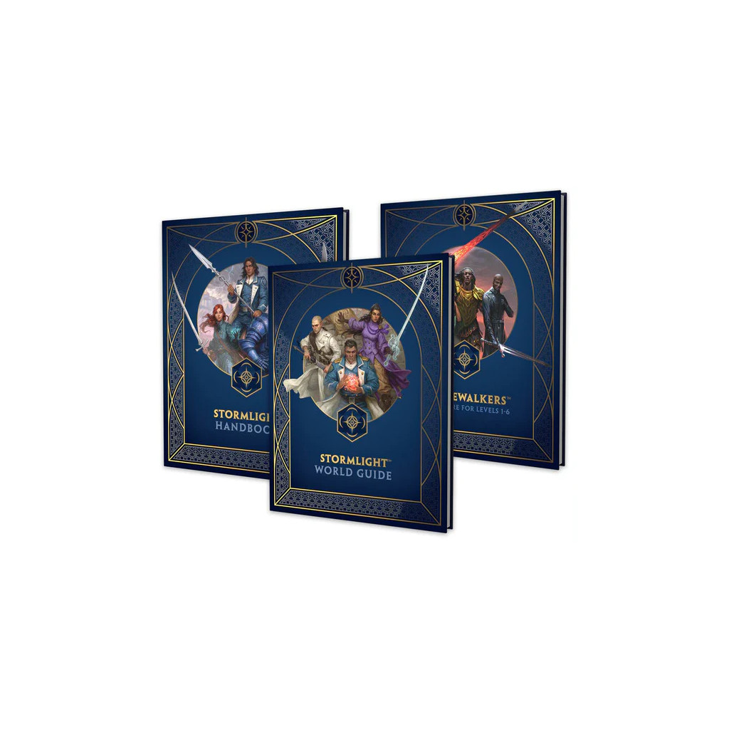 Ce coffret contient les trois livres de base du jeu de rôle Cosmere : Stormlight Handbook, Stormlight World Guide et Stormlight Stonewalkers Adventure.