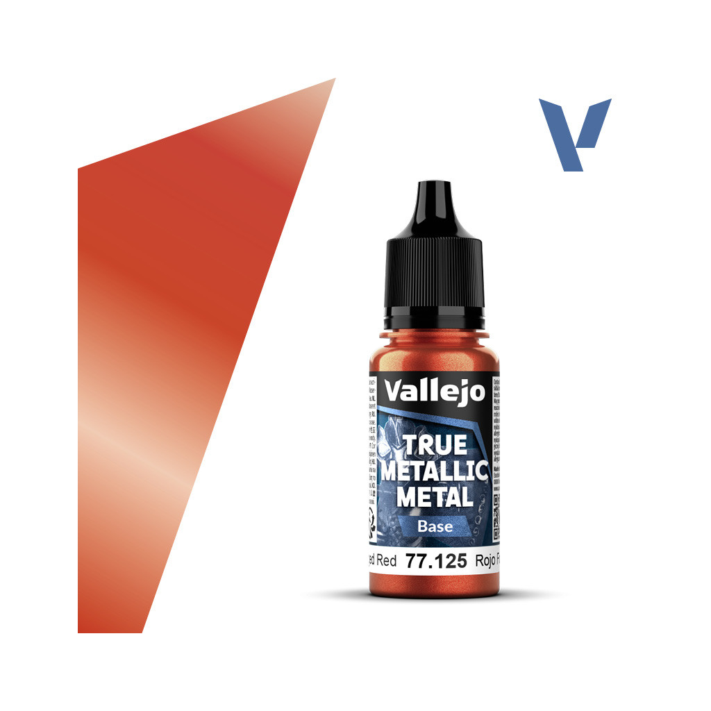 Grâce à leur nouvelle formule enrichie en pigments à effet métallisé, ces couleurs dont Vallejo - TMM : Forged Red (Base) offrent un fini saisissant et une brillance adaptée à l'échelle. Leur fort pouvoir couvrant en fait des produits idéaux pour les couches de fond, avec un fini lisse et uniforme et d'excellentes propriétés d'auto-nivellement