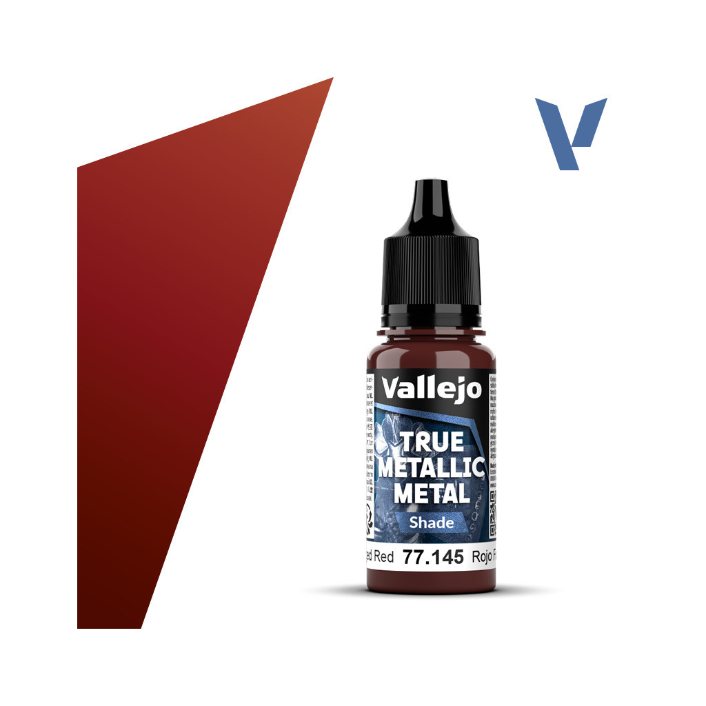 Dotées d'un fini satiné qui préserve l'éclat de la couche de base sous-jacente, ces nuances comme Vallejo - TMM : Forged Red (Shade) sont une version plus foncée et non métallisée des 20 teintes de base. Elles peuvent être diluées à l'eau pour créer des effets de dégradé dans les ombres, et les couleurs sont entièrement miscibles entre elles.