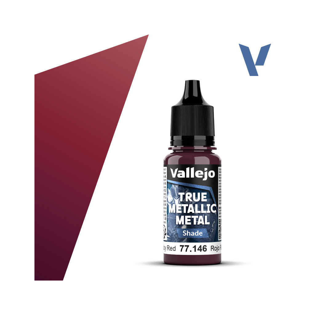 Dotées d'un fini satiné qui préserve l'éclat de la couche de base sous-jacente, ces nuances comme Vallejo - TMM : Ruby Red (Shade) sont une version plus foncée et non métallisée des 20 teintes de base. Elles peuvent être diluées à l'eau pour créer des effets de dégradé dans les ombres, et les couleurs sont entièrement miscibles entre elles.