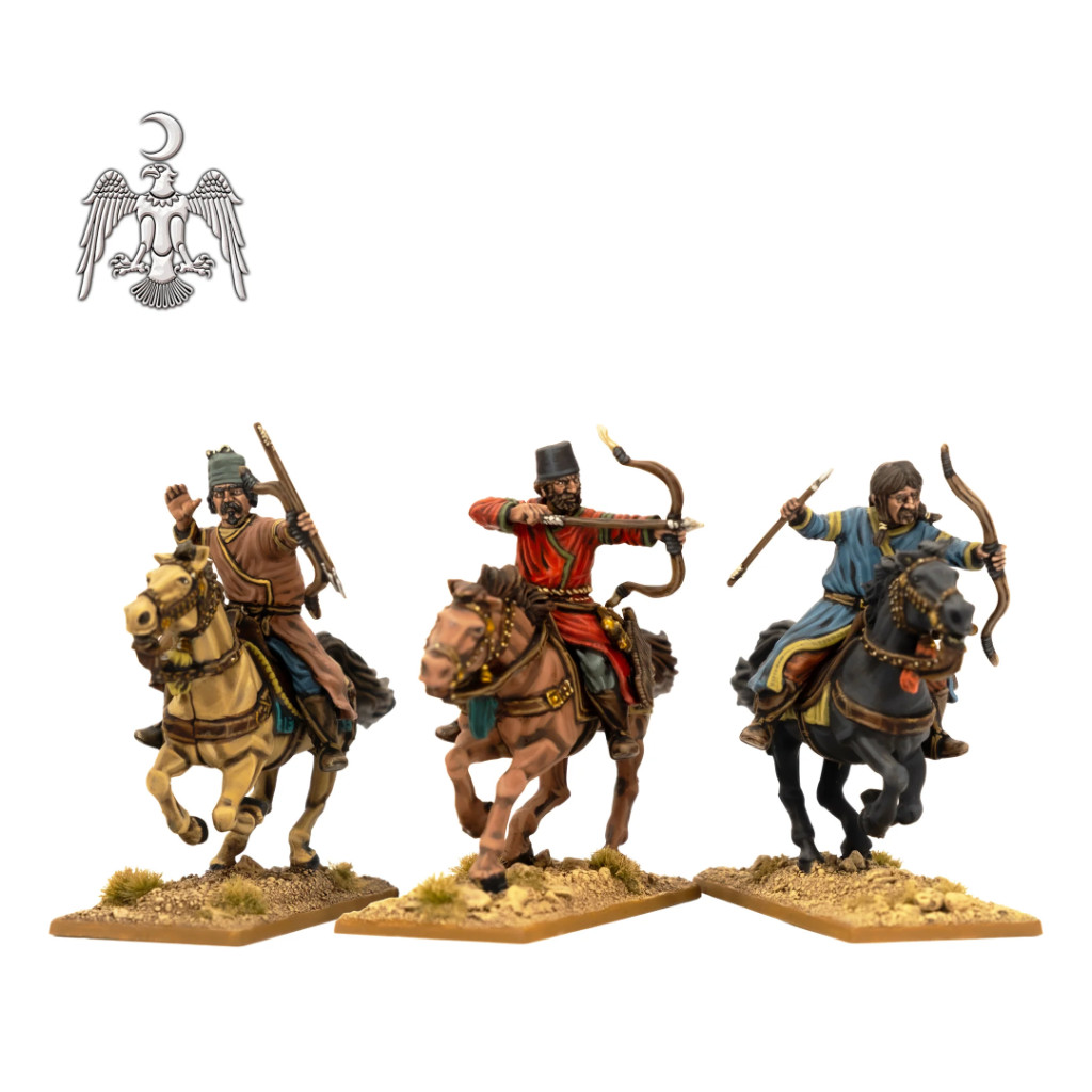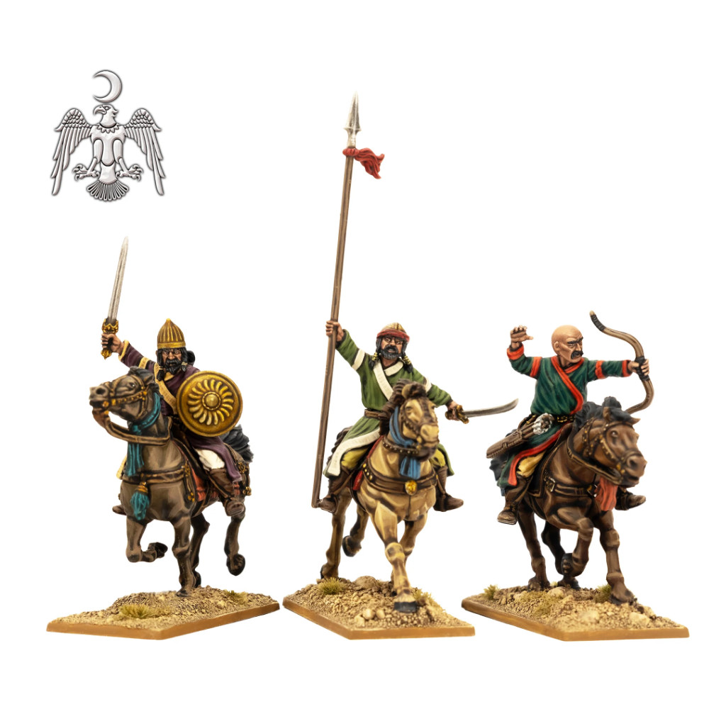 Ce set en plastique représente des archers à cheval seldjoukides et turkmènes, avec un large choix de têtes reflétant la diversité des guerriers issus de l'ensemble du monde islamique. Les tribus turkmènes combattaient en grand nombre en tant qu'auxiliaires au sein des forces seldjoukides et d'autres armées islamiques ; elles étaient réputées pour leur maîtrise du tir à l'arc à cheval et leurs tactiques de combat fluides.