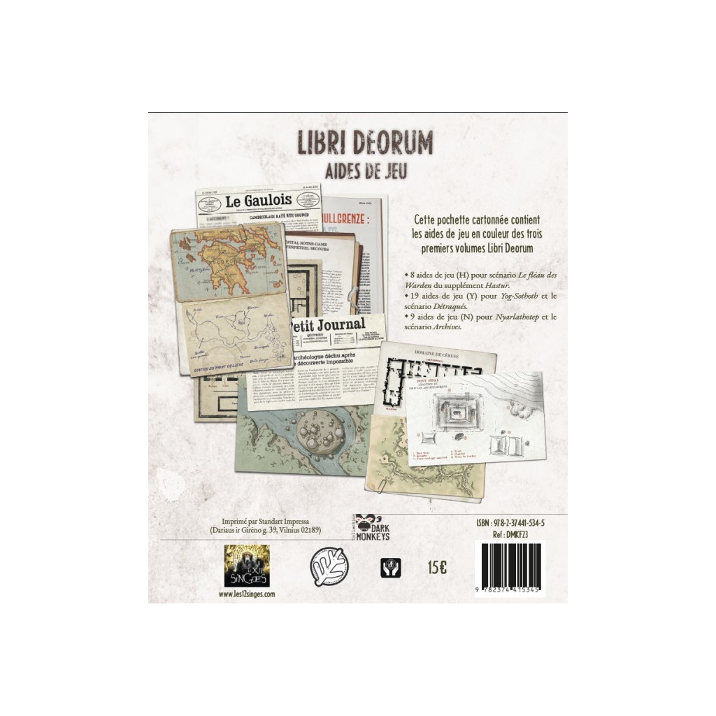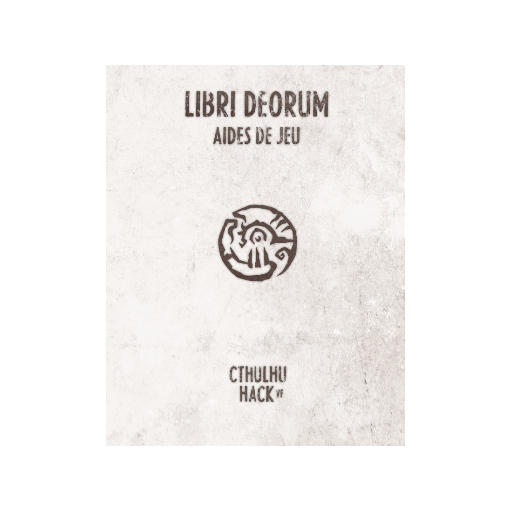 Cette pochette cartonnée contient les aides de jeu en couleur des trois premiers volumes Libri Deorum, pour le jeu de rôle Cthulhu Hack :