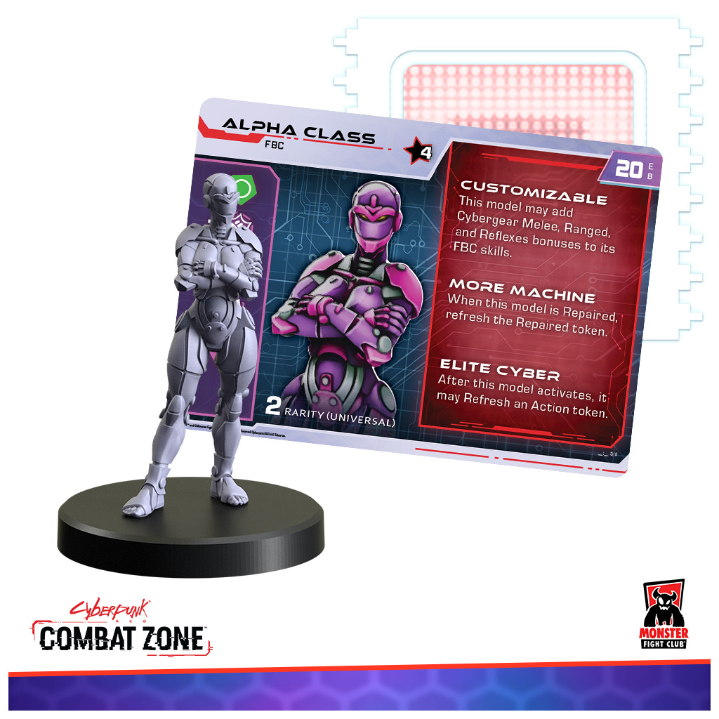 Chaque figurine du set est accompagnée d’une carte Full Body Conversion (FBC), détaillant des capacités uniques et des statistiques reflétant son design cybernétique avancé. Ces cartes, de format tarot, fonctionnent comme des cartes d’équipement, remplaçant parfaitement le modèle de votre personnage sans modifier sa fiche de statistiques. La FBC offre en revanche des améliorations puissantes et de nouvelles combinaisons de capacités.