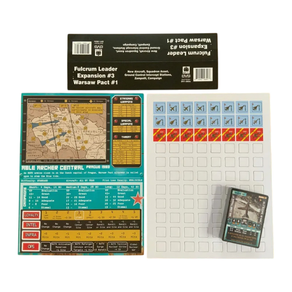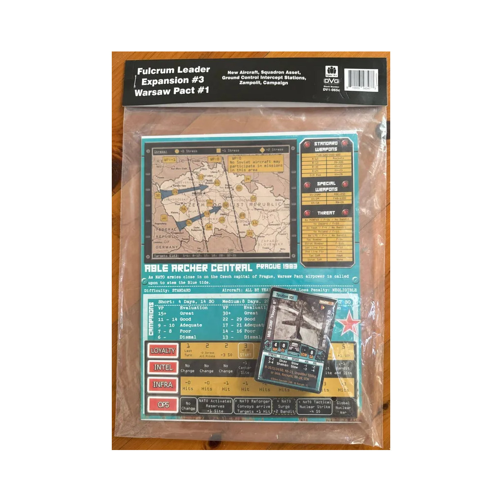 Au sein du Pacte de Varsovie, les avions conçus par les Soviétiques ont été largement utilisés sous forme de variantes propres à chaque nation. Cet ensemble met en avant les forces du Groupe Nord et du Groupe Central du Pacte de Varsovie, comprenant des appareils est-allemands, polonais et tchécoslovaques. Il ajoute 56 cartes et 16 pions à votre jeu Fulcrum Leader.