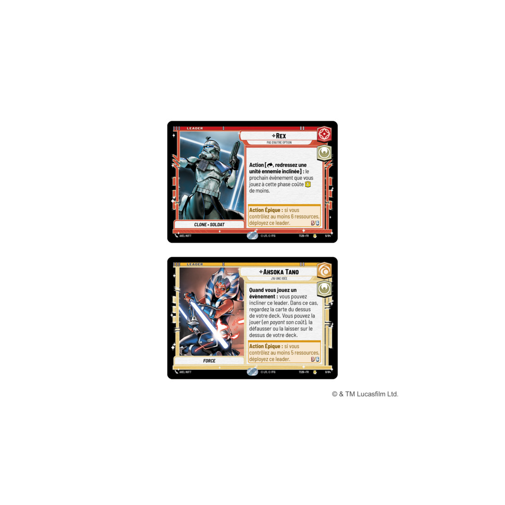 Contre Toute Attente mise sur l’improvisation avec Rex et Ahsoka Tano, un duo capable d’enchaîner les événements pour retourner les situations les plus compromises. Réductions de coût, actions supplémentaires et effets en cascade permettent de multiplier les coups d’éclat. Soutenu par des unités réactives et des améliorations bien pensées, le deck excelle à surprendre et déstabiliser, jusqu’à arracher la victoire au moment décisif.