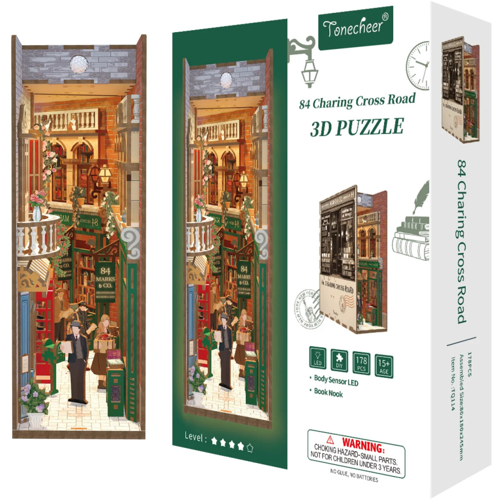 Plongez dans le Londres des années 1920 avec ce Book Nook. Ce chef-d'œuvre miniature recrée la légendaire librairie Marks & Co., une boutique britannique emblématique située depuis 1920 sur Charing Cross Road. Au cœur de la scène, le propriétaire Frank étudie des pages manuscrites issues de la correspondance de l'auteure américaine Helene Hanff.