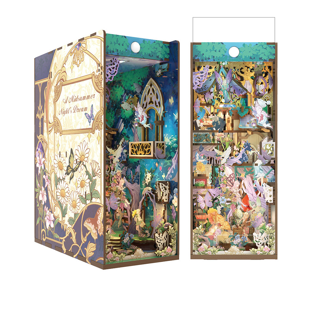 Ce Book Nook s’inspire du Songe d’une nuit d’été, l'une des quatre grandes comédies de Shakespeare. Ce kit Book Nook recrée des scènes classiques, comme le lutin espiègle Puck versant une potion d’amour dans les yeux de Lysandre, ainsi que Démétrius et Hélèna tombant par accident sur le concert des fées – vous donnant l’impression d’être plongé au cœur du théâtre shakespearien.
