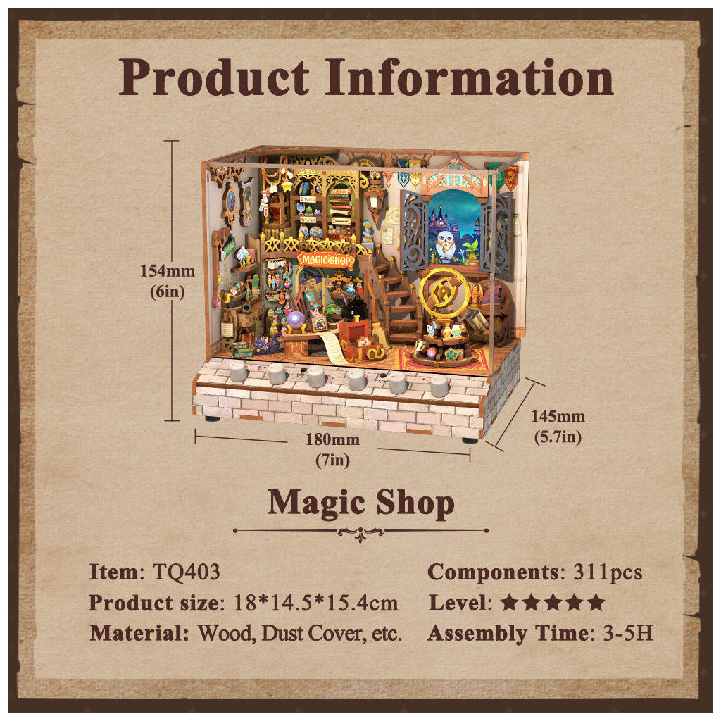 Par une nuit mystérieuse, une chouette arrive à votre fenêtre, tenant dans son bec la lettre d’admission à l’académie de magie. Venez visiter la boutique magique bien approvisionnée, où toutes sortes de potions mystérieuses, baguettes et animaux magiques vous attendent sur les étagères pour votre sélection !