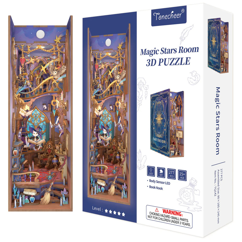 Book Nook - Magic Stars Room est un petit décor miniature ou diorama sous forme de maquette que l'on place à l'intérieur d'une bibliothèque ou d'une étagère de livres.
