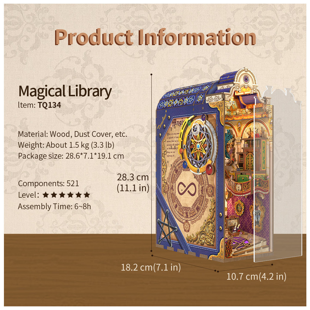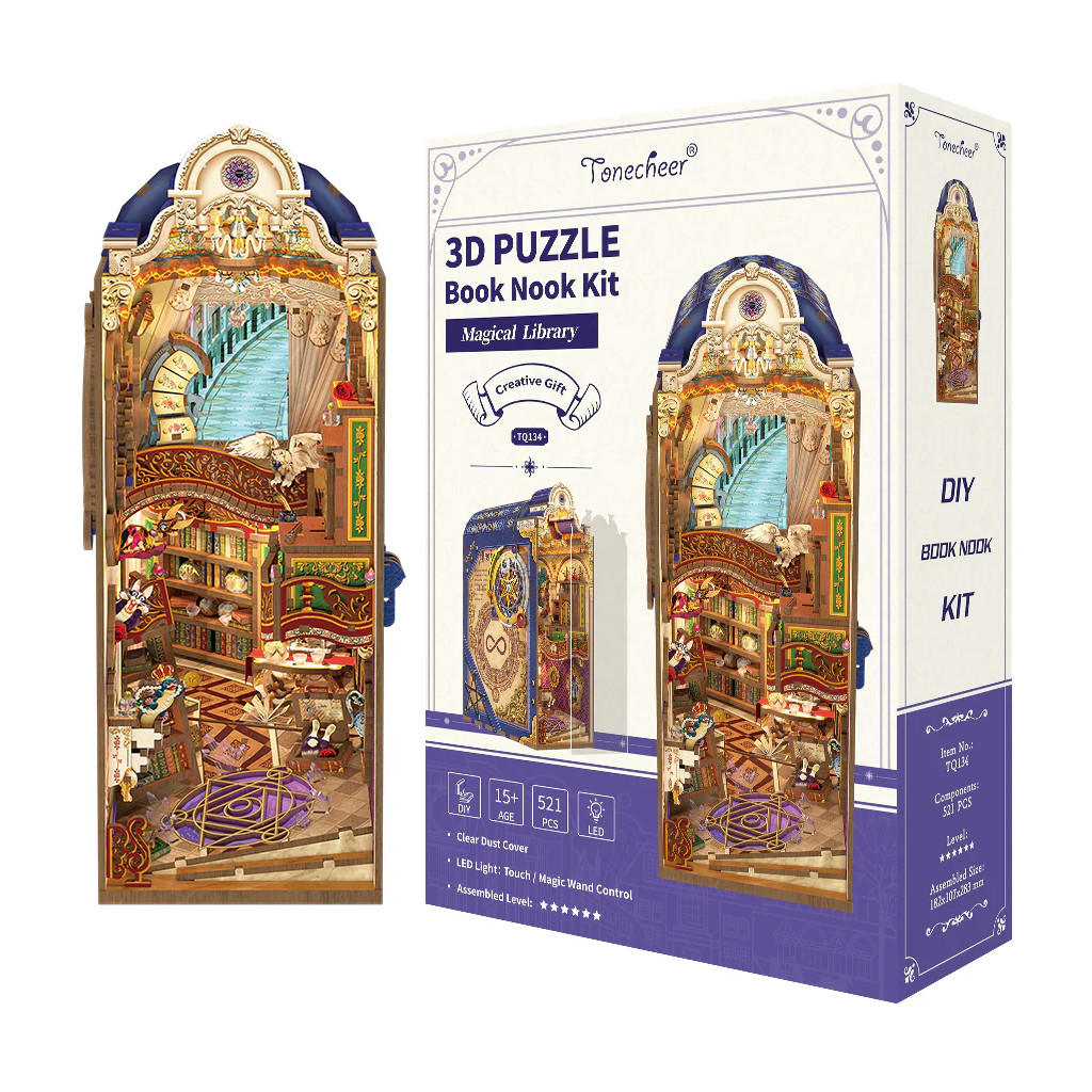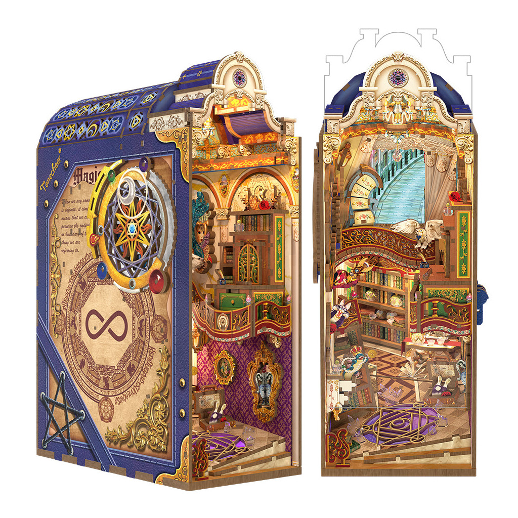 Book Nook - Magical Library est un petit décor miniature ou diorama sous forme de maquette que l'on place à l'intérieur d'une bibliothèque ou d'une étagère de livres.