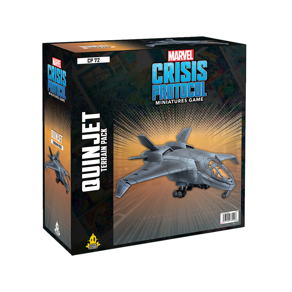Combinant les prouesses technologiques de l'ingénierie Wakadan et de Stark Industries, les Quinjets ont servi les Avengers et les agents du S.H.I.E.L.D. en tant que véhicule d'intervention rapide capable de les transporter partout où une crise se produit. Les Quinjets sont une partie cruciale de la façon dont les héros les plus puissants et les équipes secrètes de la Terre peuvent arriver là où on a le plus besoin d'eux, et ce pack renforce l'immersion des joueurs dans leurs parties de Marvel : Crisis Protocol en en ajoutant un sur le champ de bataille.