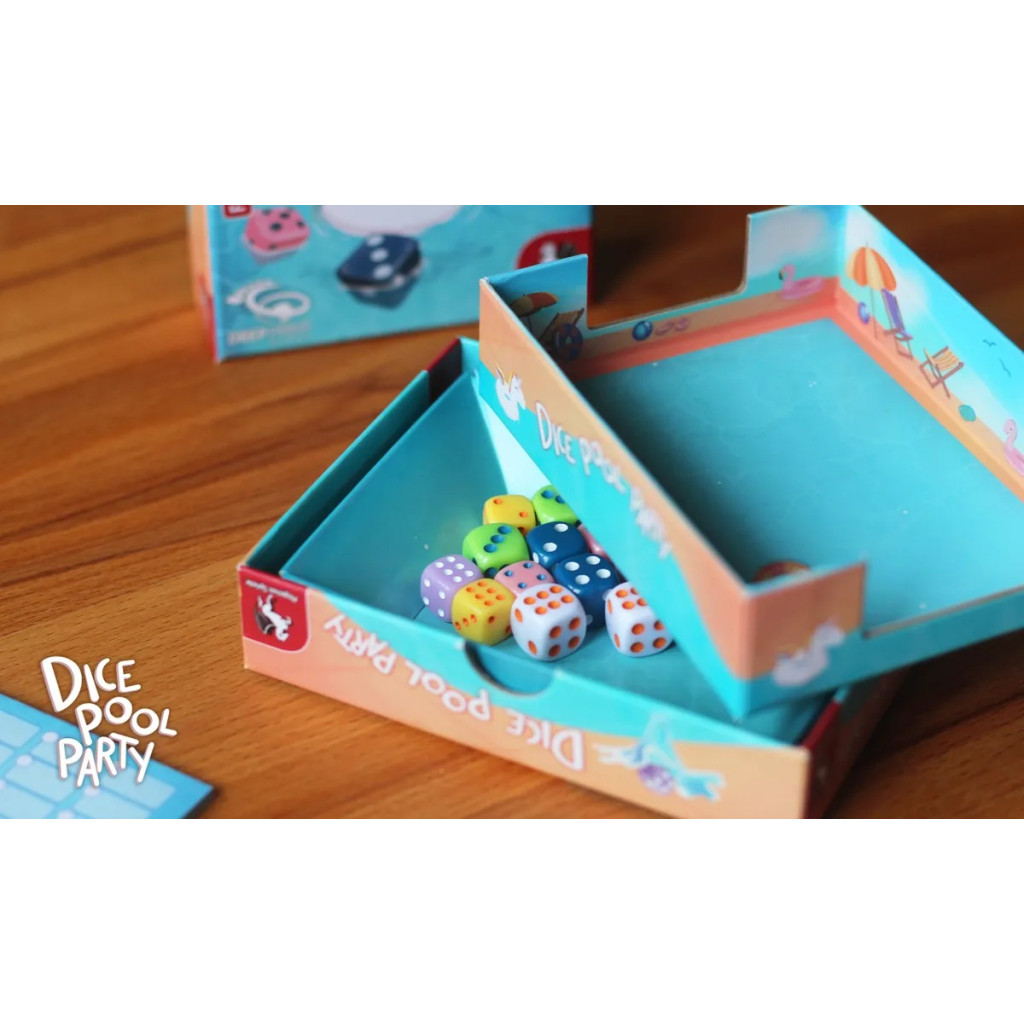 Secouez les 12 dés dans la piscine (qui sert également de boîte de jeu), mémorisez rapidement ce que vous voyez et choisissez la catégorie qui vous rapporte le plus de points. Soyez attentif pour prendre la bonne décision et remporter la partie !