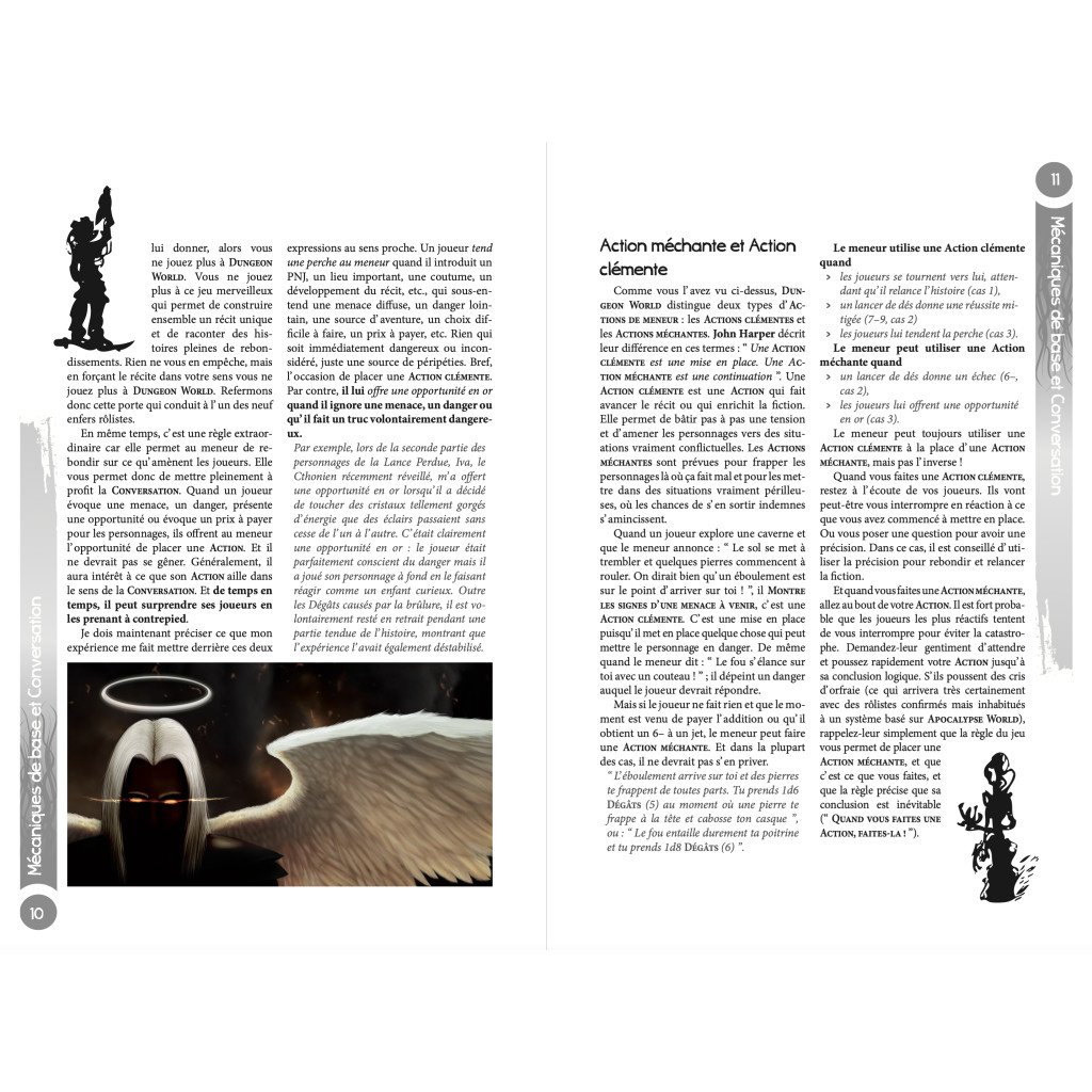 Ses explications claires et didactiques aideront joueur/ses et meneur/ses à franchir le pas. Comment fonctionne le système de jeu et la narration? Comment ça se passe lors des combats et comment doser l’adversité? Comment créer un monde à Haut Potentiel Ludique? Bref, tout ce dont vous avez besoin pour comprendre et profiter pleinement de Dungeon World.