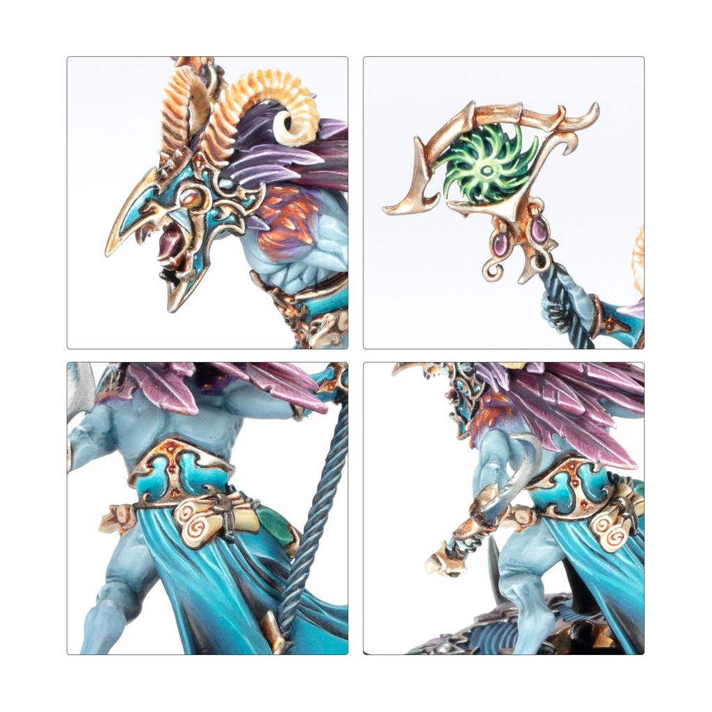 Le Dieu du Changement a des projets pour vous. Cette boîte est parfaite pour entamer une nouvelle collection de Disciples de Tzeentch ou étoffer une armée existante tout en faisant des économies par rapport à un achat des kits au détail. Cette force d'élite est menée par un Chamane Tzaangor sur Disque de Tzeentch qui exsude une aura de magie mutagène. Les Tzaangors Flambeciel et les Tzaangors Éclairés, également montés sur des Disques de Tzeentch, vous permettent de dominer le champ de bataille avec des troupes très mobiles, et une unité de Tzaangors vous fournit toute la force de frappe dont vous avez besoin pour chasser l'ennemi des objectifs. Ces figurines composent une force de Fer de Lance complète, ce qui vous permet de vous lancer sans attendre dans des parties réduites et tactiques pour accomplir vos plans de maître.