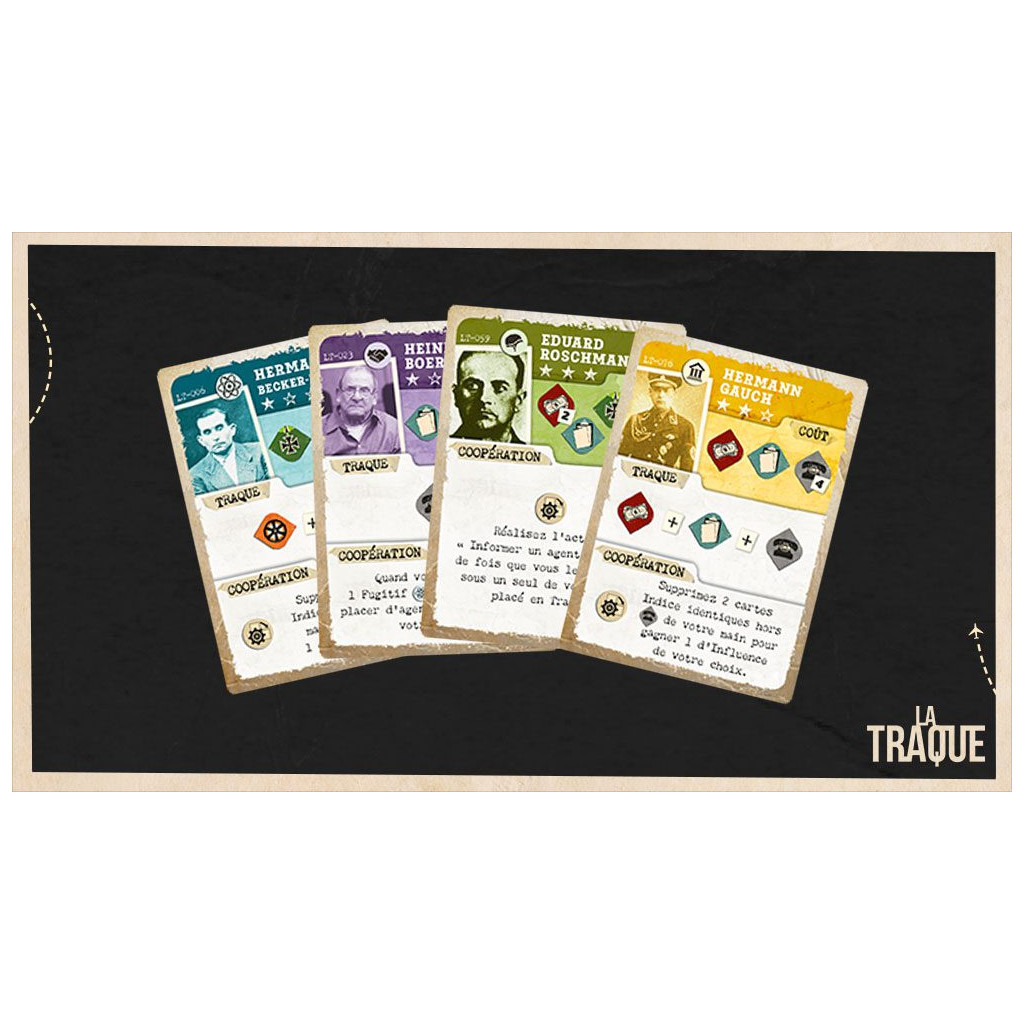 Mais la Traque a commencé ! Prenez la tête d’une faction, planifiez les actions de vos agents pour enquêter et capturer ces fugitifs essentiels à la réalisation de votre ambition. Cependant, agissez vite et soyez prudents : d’autres groupes œuvrent également dans l’ombre pour s’emparer de ces mêmes cibles !