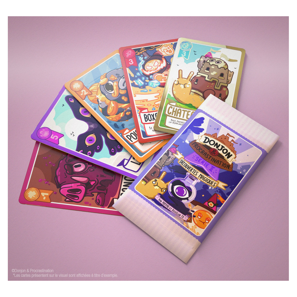 Les boosters de la Série 2 Découvertes Magiques permettent de développer sa collection et bien sûr ses stratégies ! Découvrez les créatures et lieux étonnants de l’univers incomparable de Donjon & Procrastination ! 5 cartes par booster, dont 1 Gold.