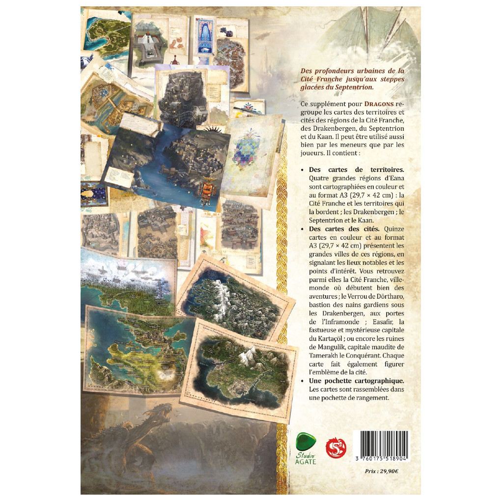 Dragons- Set de Cartographies Encyclopédie Vol. 1 est un set de cartes géographique pour le jeu Dragons vous permettant de découvrir les 4 grandes régions d’Eana dans un format A3 en couleur !: