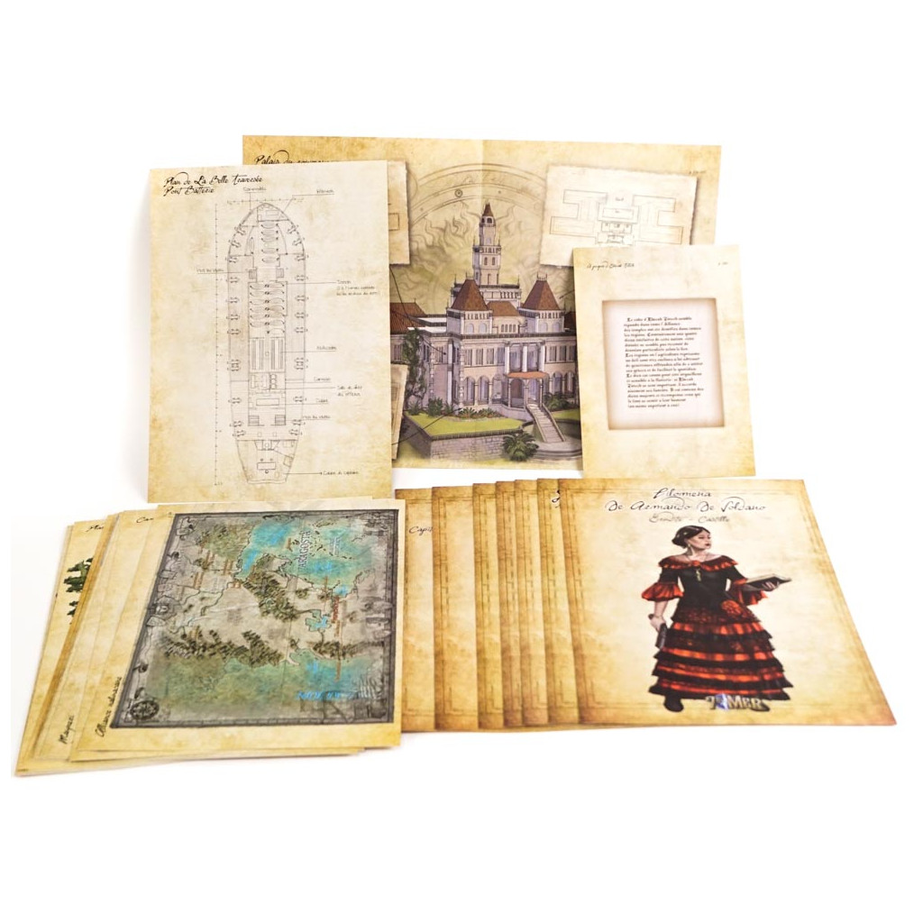 Vous y trouverez aussi 15 cartes, toujours au format A3, représentant les principales cités de toutes ces régions. De la Cité Franche, au Verrou de Dörtharo, en passant par Easafir ou encore aux ruines de Mangulik, toutes ces cartes sont agrémentées d’un signalement des lieux notables et des points d’intérêt, ainsi que de l’emblème de la cité concernée.