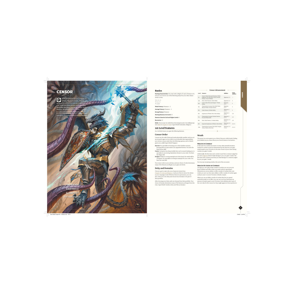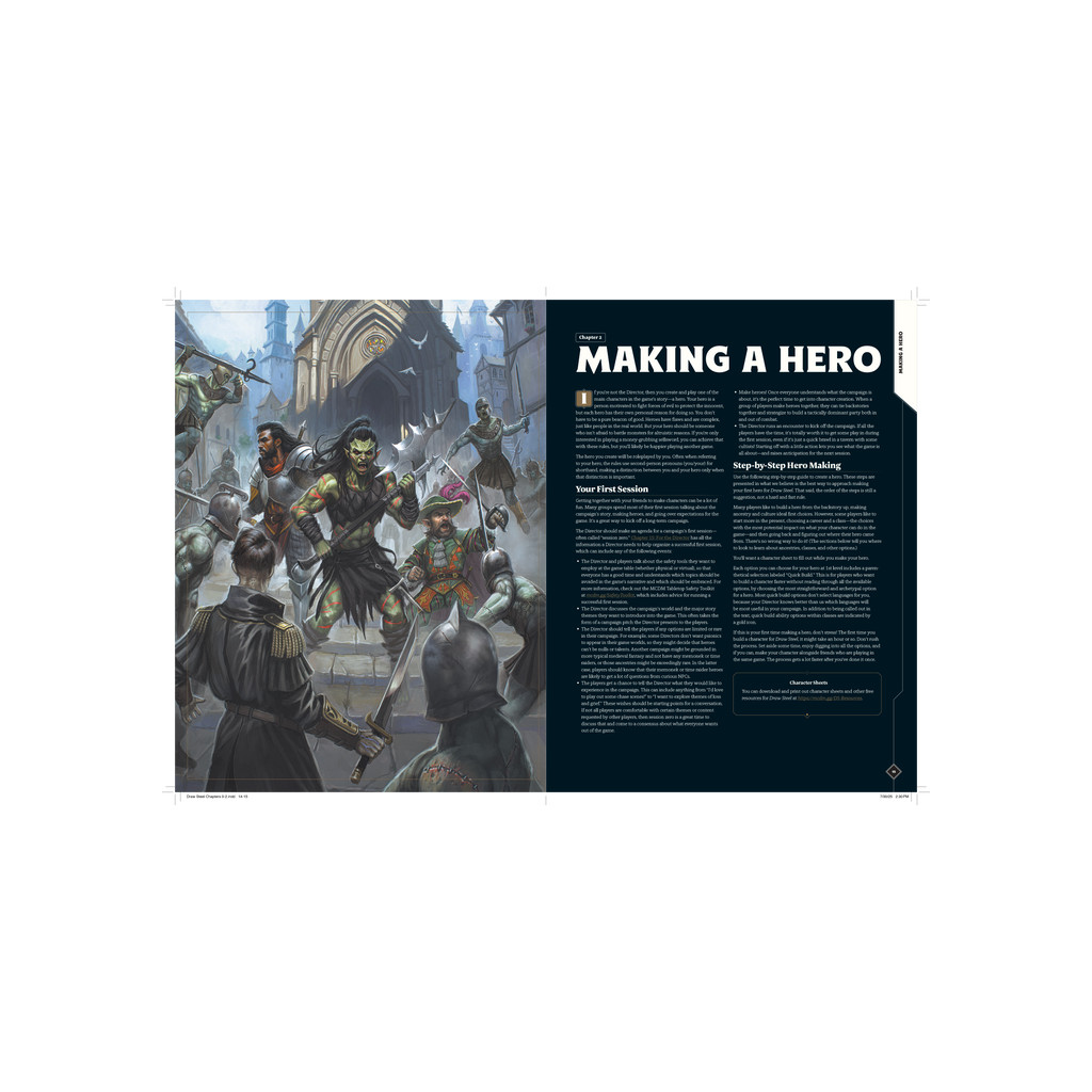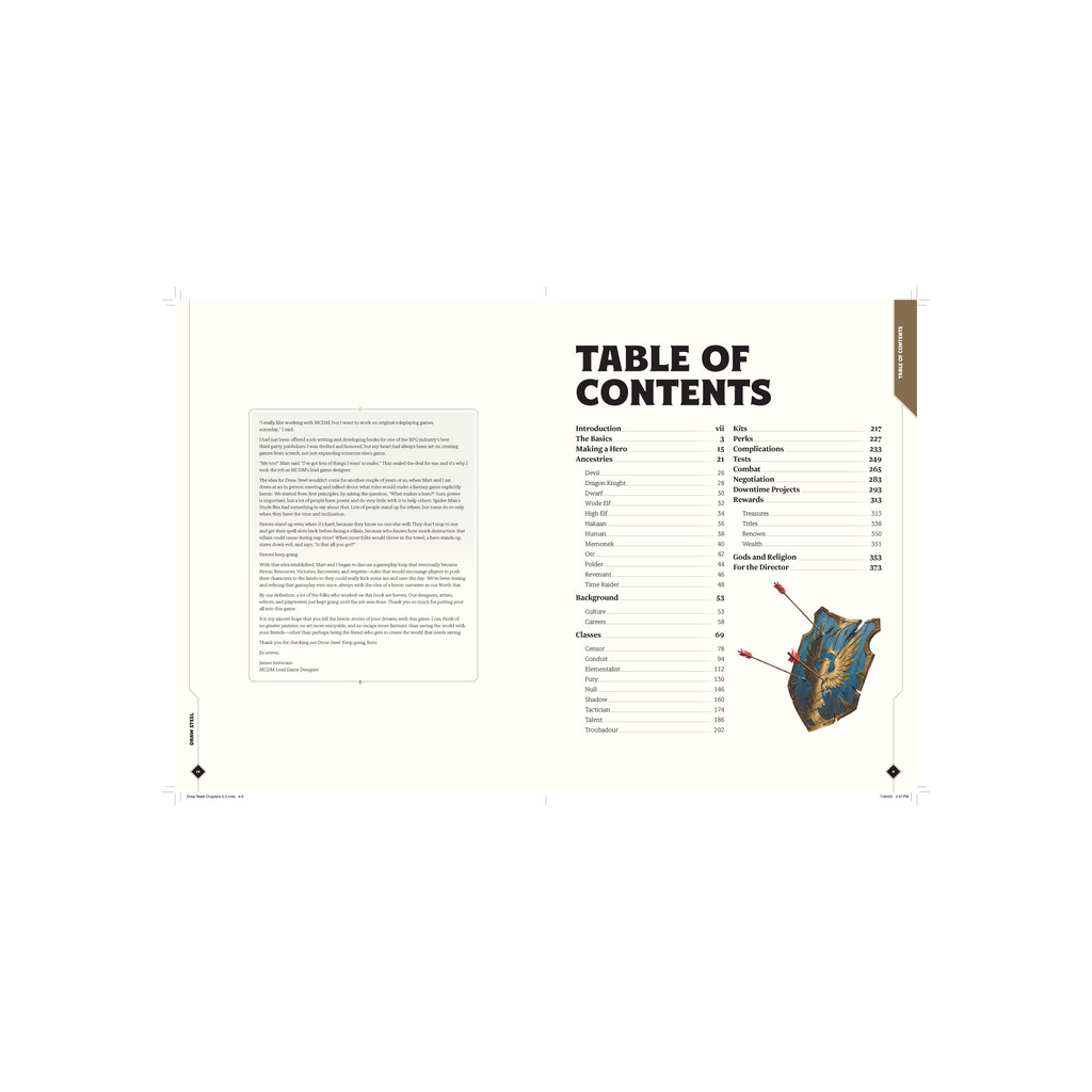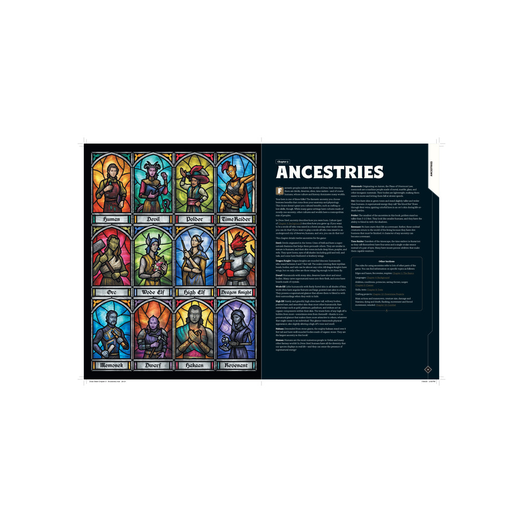 Plus de 400 pages d’options pour les personnages et de règles pour jouer, en combat comme hors combat, toutes conçues avec une intention et un objectif clairs.