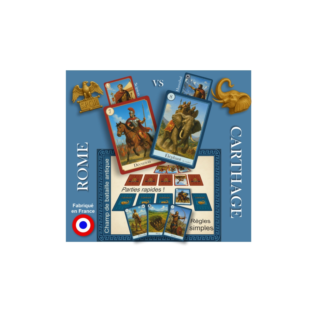 Au IIIᵉ siècle avant notre ère, Rome et Carthage se disputent la domination de la Méditerranée durant la Seconde Guerre punique. Le général carthaginois Hannibal Barca ose l’impensable : traverser les Alpes avec ses éléphants pour frapper Rome sur son propre sol. Face à lui, Scipion l’Africain mobilise ses légions pour défendre la République. Chaque partie vous plonge au cœur de cette épopée militaire légendaire, où chaque carte jouée peut changer le cours de l’Histoire.