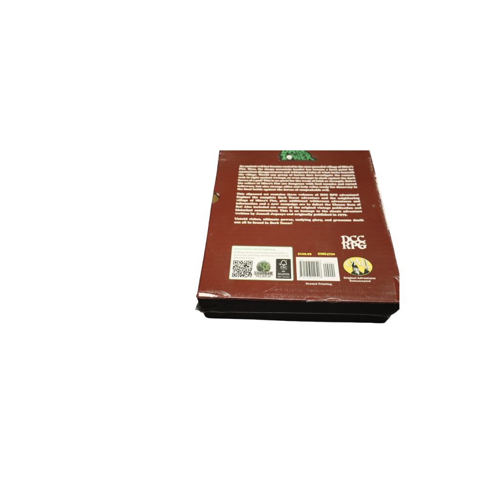Richesses inouïes, pouvoir ultime, gloire impérissable et mort atroce sont au rendez-vous dans Dark Tower ! Dark Tower est un hommage à l'aventure classique et est une conversion complète de DCC RPG, ainsi que du matériel additionnel entièrement nouveau. Ce coffret de trois volumes contient une réimpression de l'aventure originale et des essais de grands noms de l'industrie (Volume 1), une conversion DCC RPG complète de l'aventure classique (Volume 2), et trois nouvelles aventures, Les fils élus de Seth (Volume 3). Cette campagne tentaculaire convient aux personnages de niveau 3 et plus, et peut facilement être intégrée à votre propre environnement.