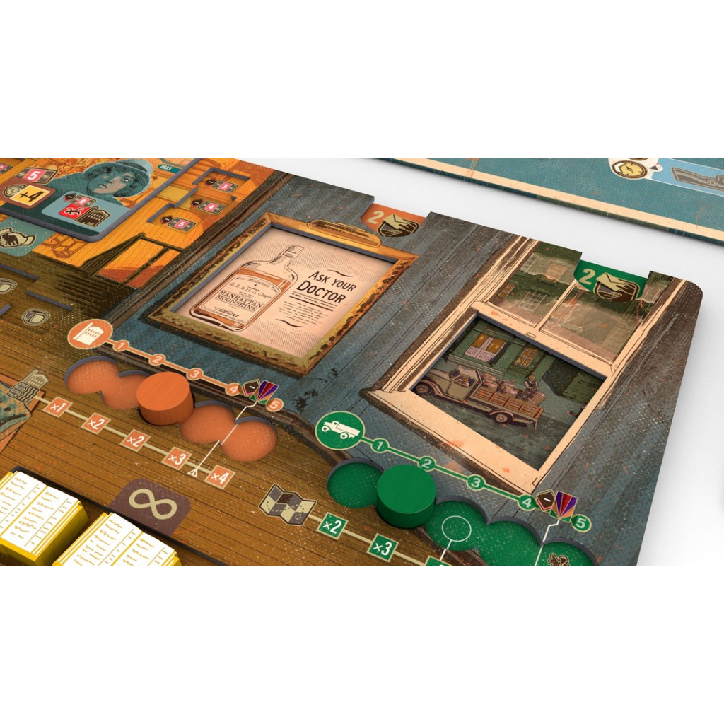 Vous devez engager des hommes de main pour vous aider à prendre le contrôle de Manhattan durant cette période aussi palpitante que dangereuse. Vous pouvez vous associer à des gangsters indépendants, et même attaquer et dépouiller les coureurs de rhum pour obtenir de précieuses ressources et prendre l'avantage sur vos rivaux. Vous devez gérer vos cartes avec soin, en plaçant vos ouvriers de manière stratégique pour livrer de l'alcool illicite afin de gagner de l'argent. En gérant bien vos livres de comptes, vous pourrez remplir également vos coffres avec l'argent de la fraude.
