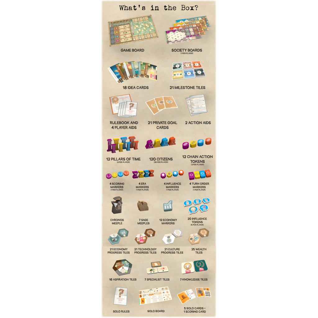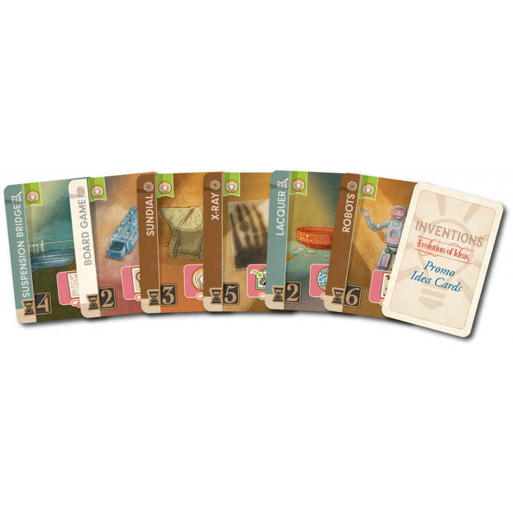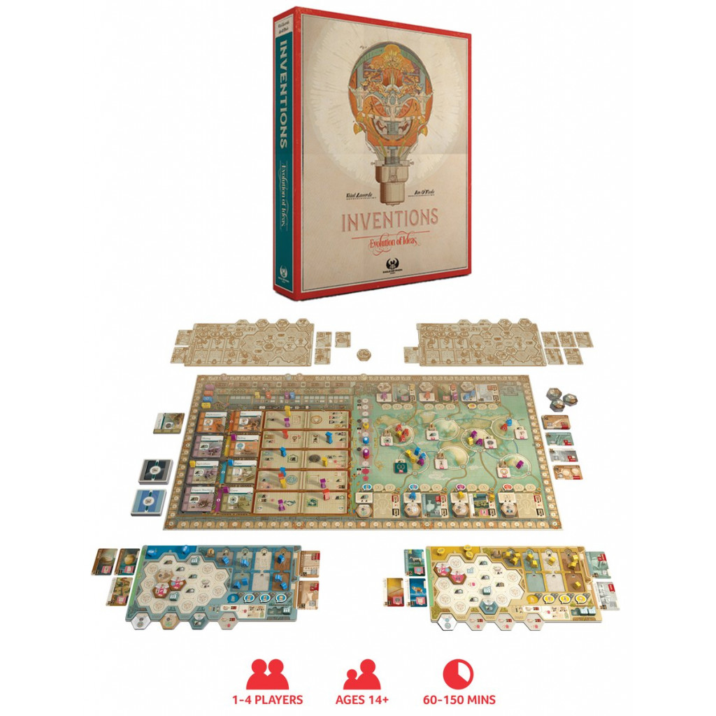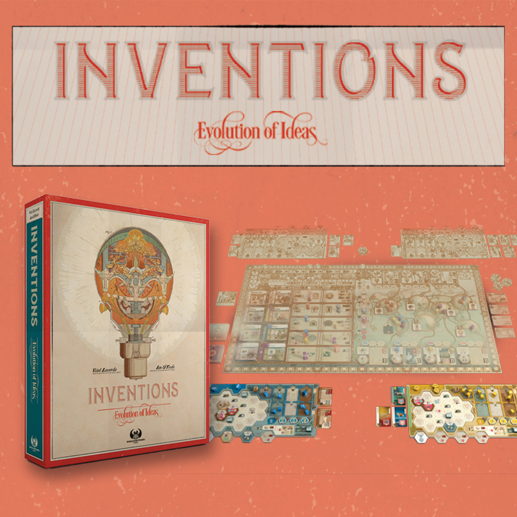 Inventions est un jeu tactique qui s'articule autour autour d'une stratégie à long terme. Les progrès de chaque société sont mesurés en points d'ingéniosité (PI). Le joueur qui a le plus de PI a la société la plus forte et gagne la partie.Mode solo inclus.