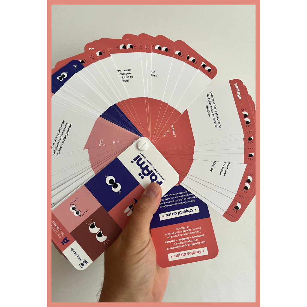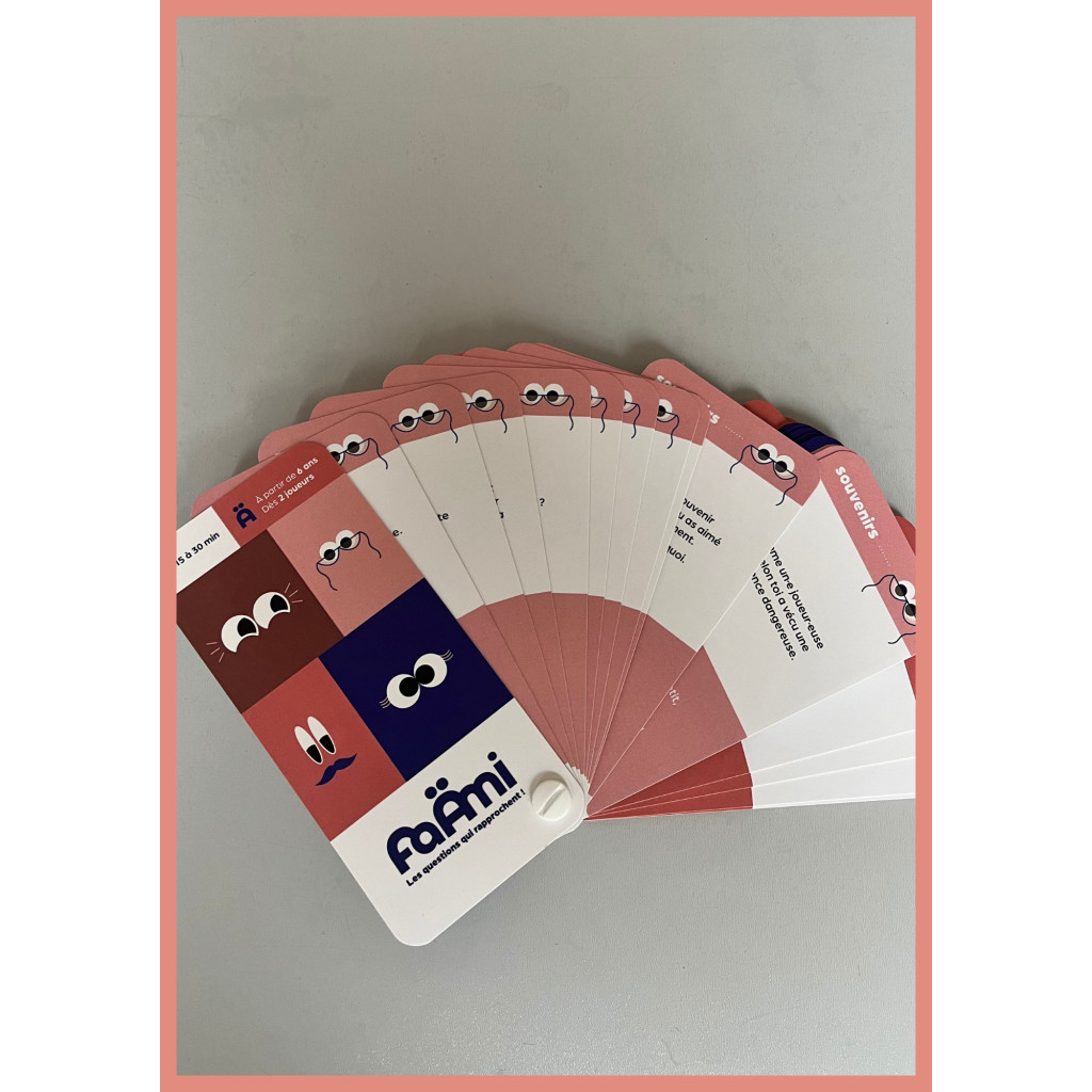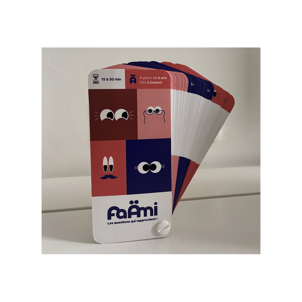 FaÄmi est un jeu de société en famille et entre amis, pour nourrir de belles discussions avec ses proches et en famille, développer la complicité avec ses enfants, renforcer les liens amicaux et familiaux, mieux connaître ceux qui nous entourent !